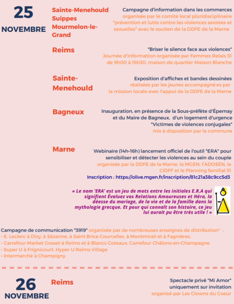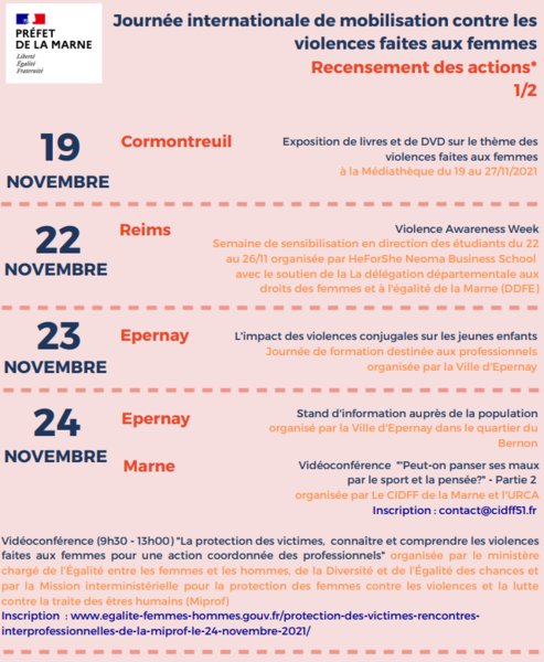 A l’occasion de la journée internationale de mobilisation contre les violences faites aux femmes qui aura lieu le 25 novembre prochain, diverses actions sont menées dans le département de la Marne.