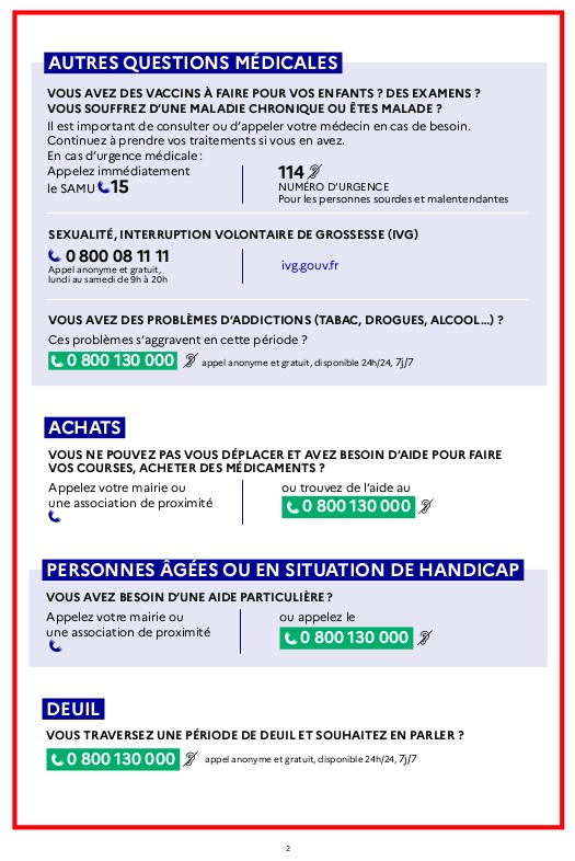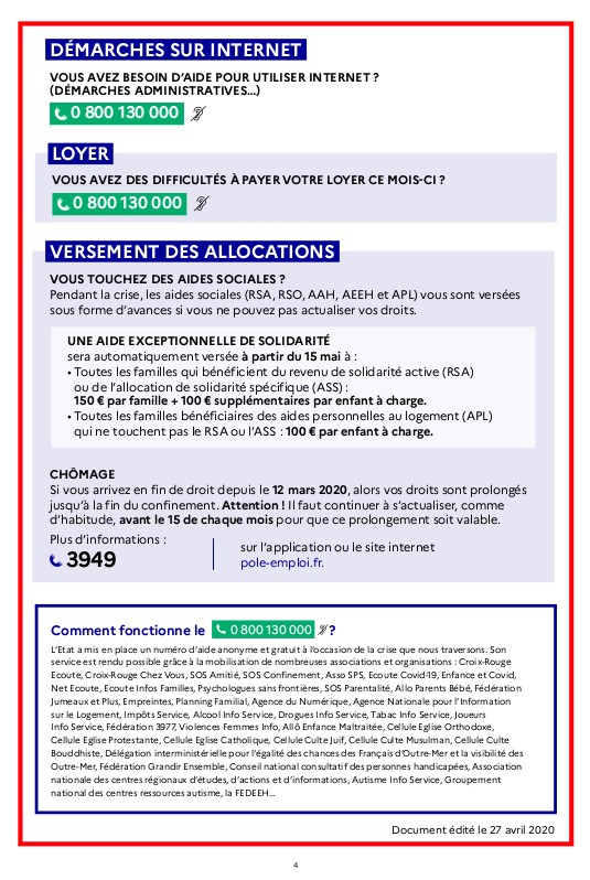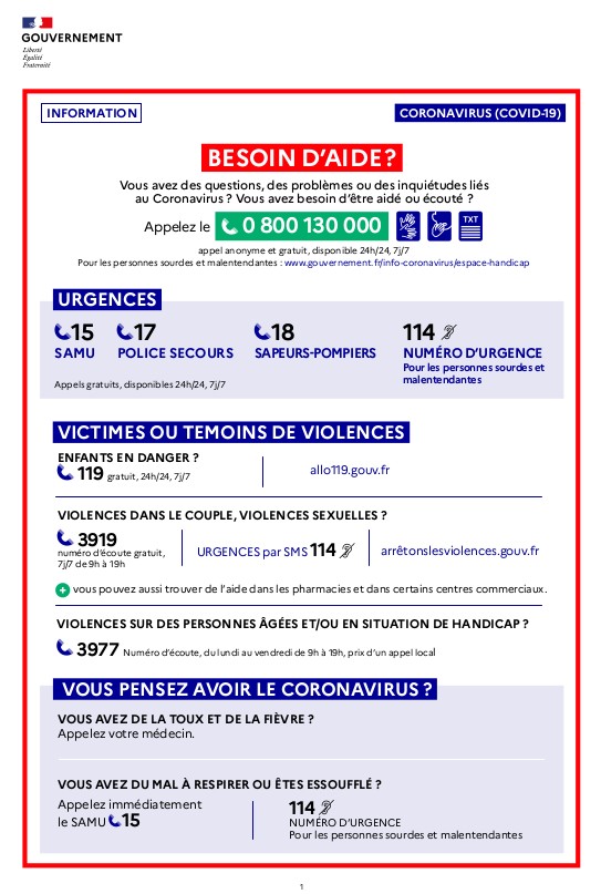 De nombreux dispositifs existent pour répondre aux problèmes causés ou renforcés par la crise. Pour ce faire un guide pratique recense, sous forme de questions-réponses, les solutions disponibles : numéros d’urgences, d’écoute, numéro vert.
