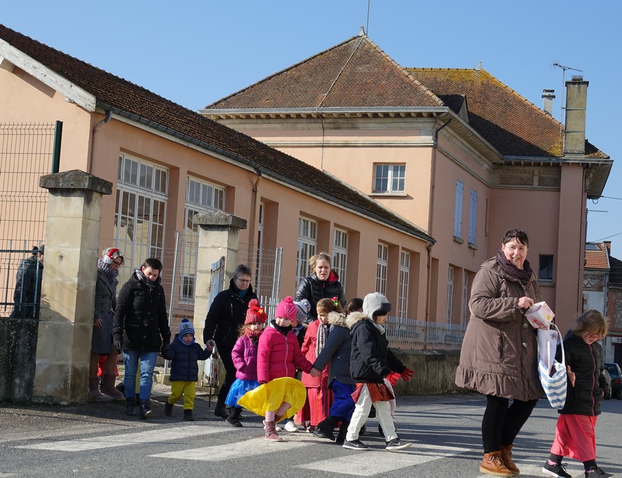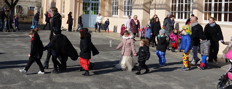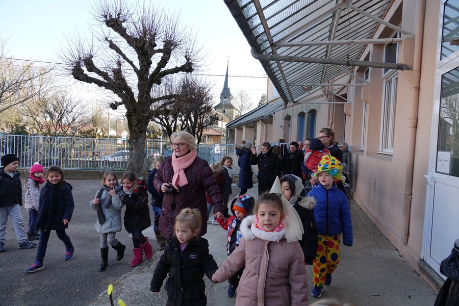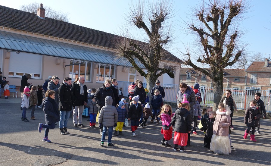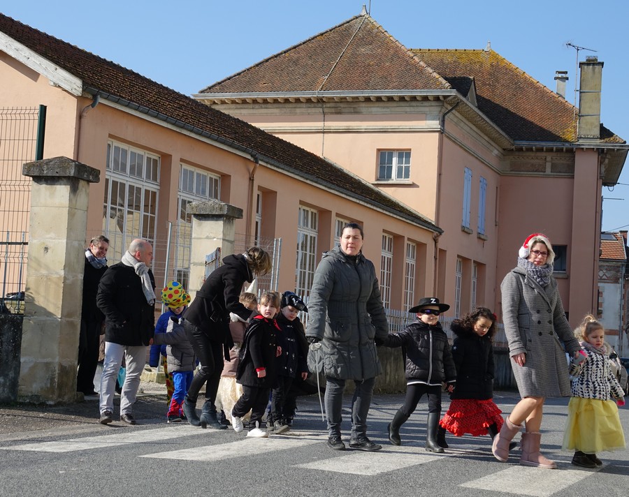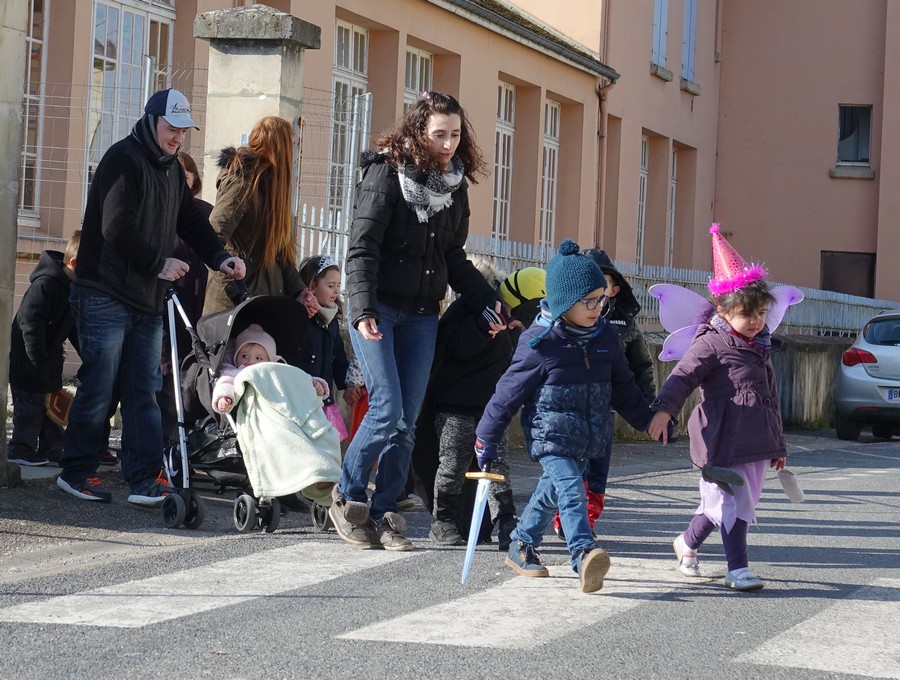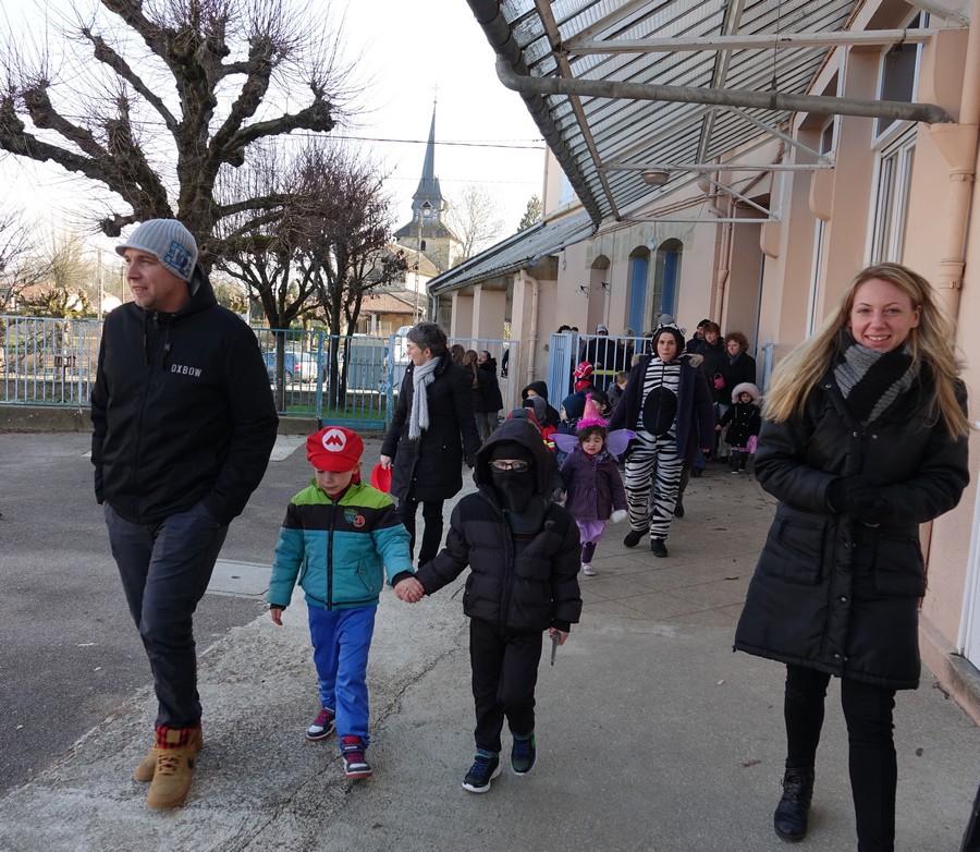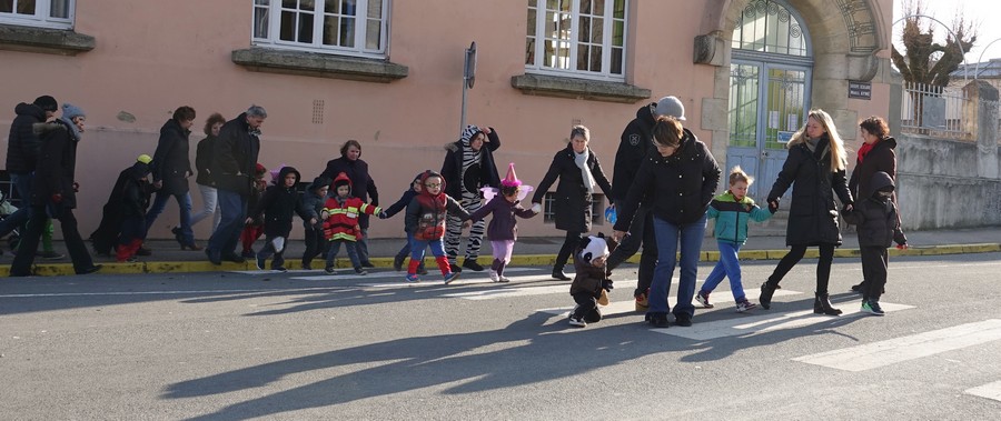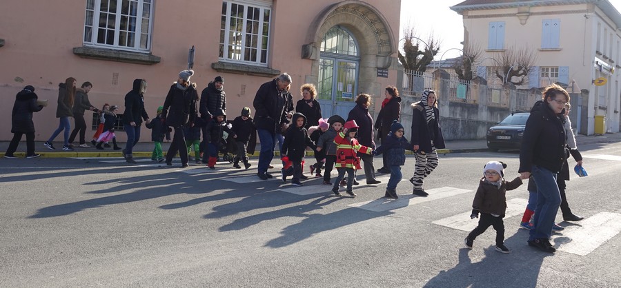Après un défilé dans les rues, les enfants, accompagnés de nombreux parents, ont rejoint leurs camarades de l’école Marcel AYME, puis sont allés saluer les résidents de la maison de retraite pour terminer à la bibliothèque.