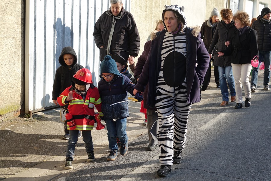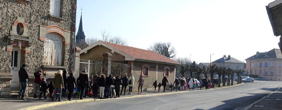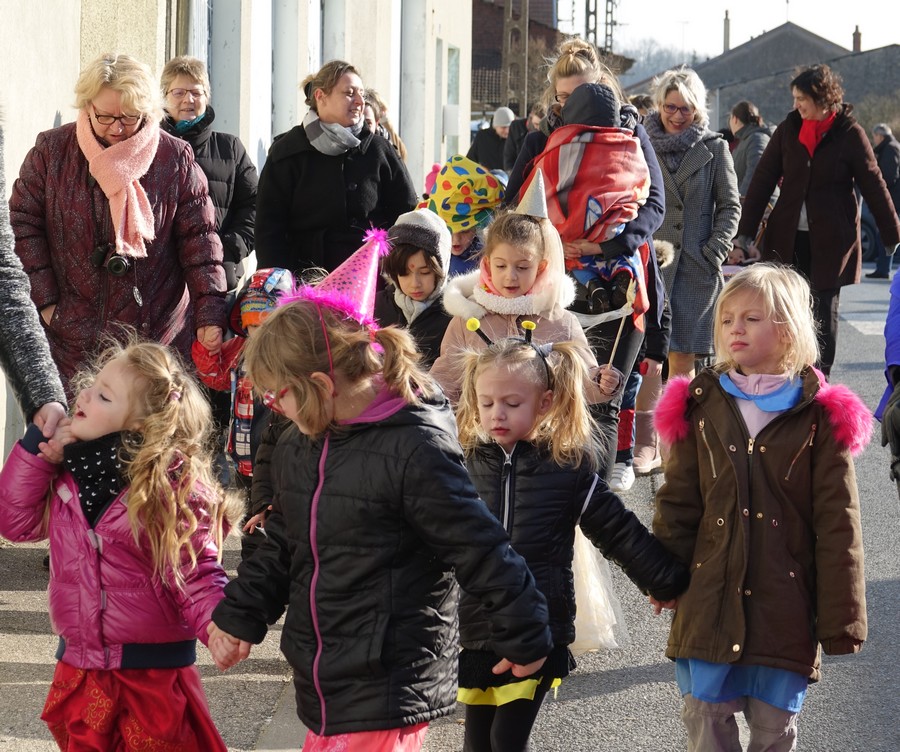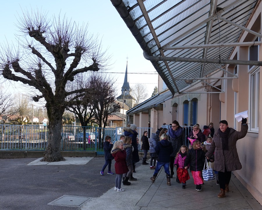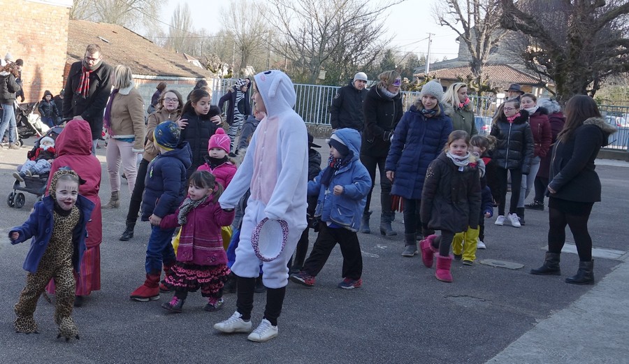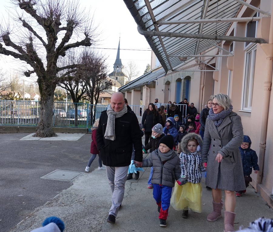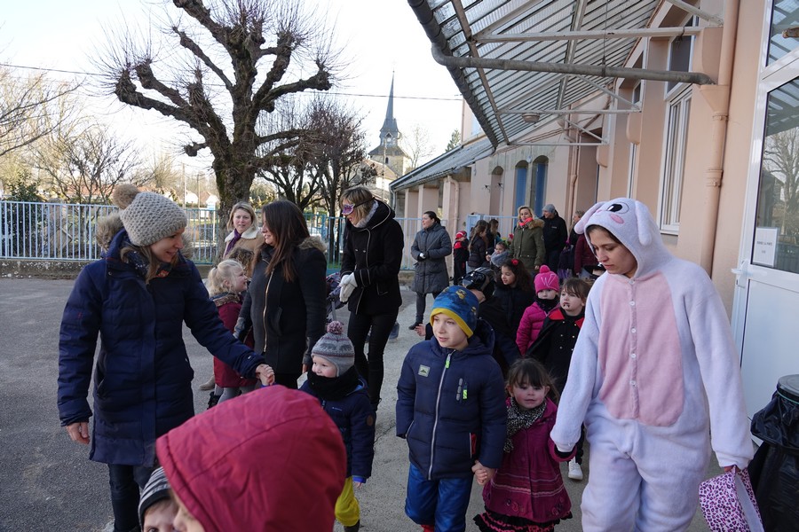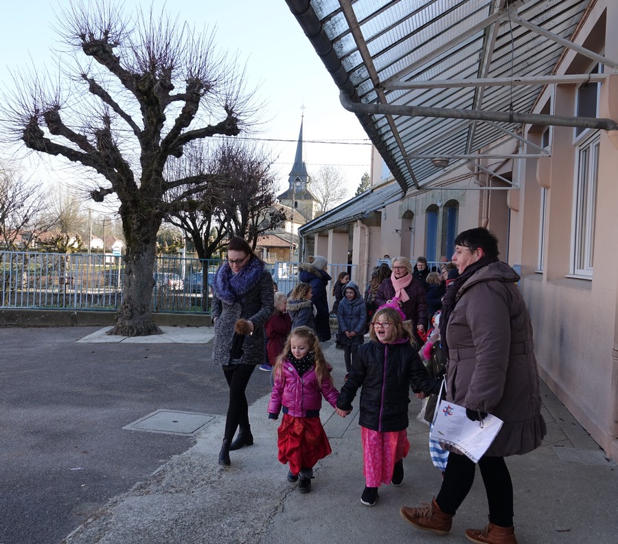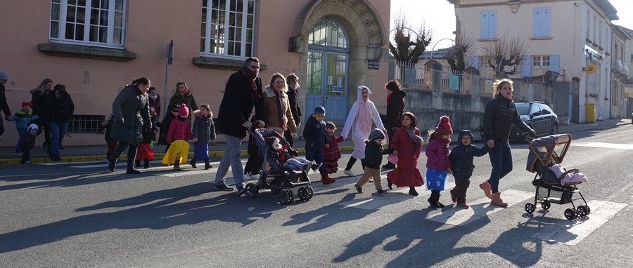 Après un défilé dans les rues, les enfants, accompagnés de nombreux parents, ont rejoint leurs camarades de l’école Marcel AYME, puis sont allés saluer les résidents de la maison de retraite pour terminer à la bibliothèque.