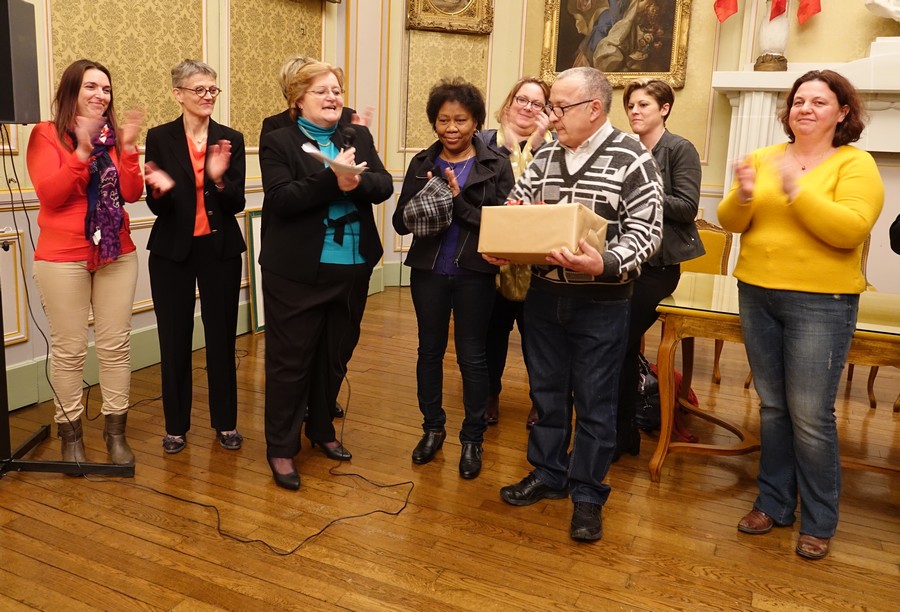 Monsieur Patrice MOUILLET vient de faire valoir ses droits à la retraite ; avant de rejoindre l’équipe des Services Techniques, il a travaillé pendant de longues années en tant que mécanicien au garage de Monsieur BIDAUT. Il est entré aux services municipaux le 1er Janvier 2014 , en contrat aidé à temps partiel. Et a occupé le poste de régisseur du marché dominical depuis 2016, succédant à Monsieur Pierre BERSCHINSKI. Une opération de ses deux mains au mois de septembre dernier ne lui a pas permis de reprendre son travail ; sa retraite est effective au 1er Février mais dés à présent nous lui souhaitons de profiter au maximum de ces longues vacances en famille et nous avons le plaisir de lui remettons ce cadeau .