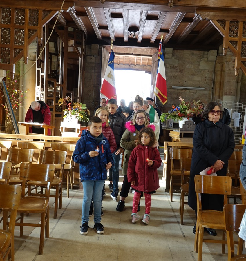 A 10h30 le père SCHADECK a présidé la messe du souvenir à l’église de la Nativité en rappelant tous les sacrifices des soldats et des familles. Des témoignages ont été lus et Suzanne PARIS a récité un poème de l’abbé BOLLOT curé de Sermaize pendant 45 ans:
