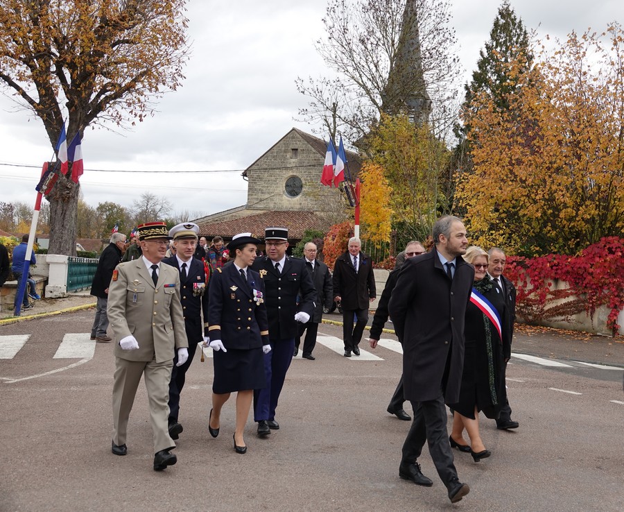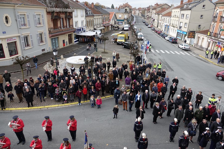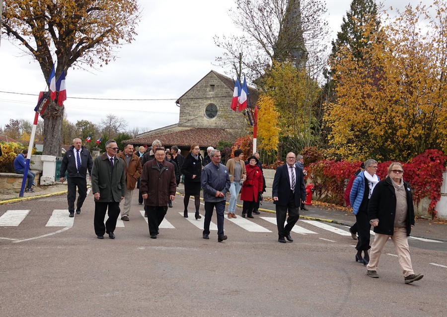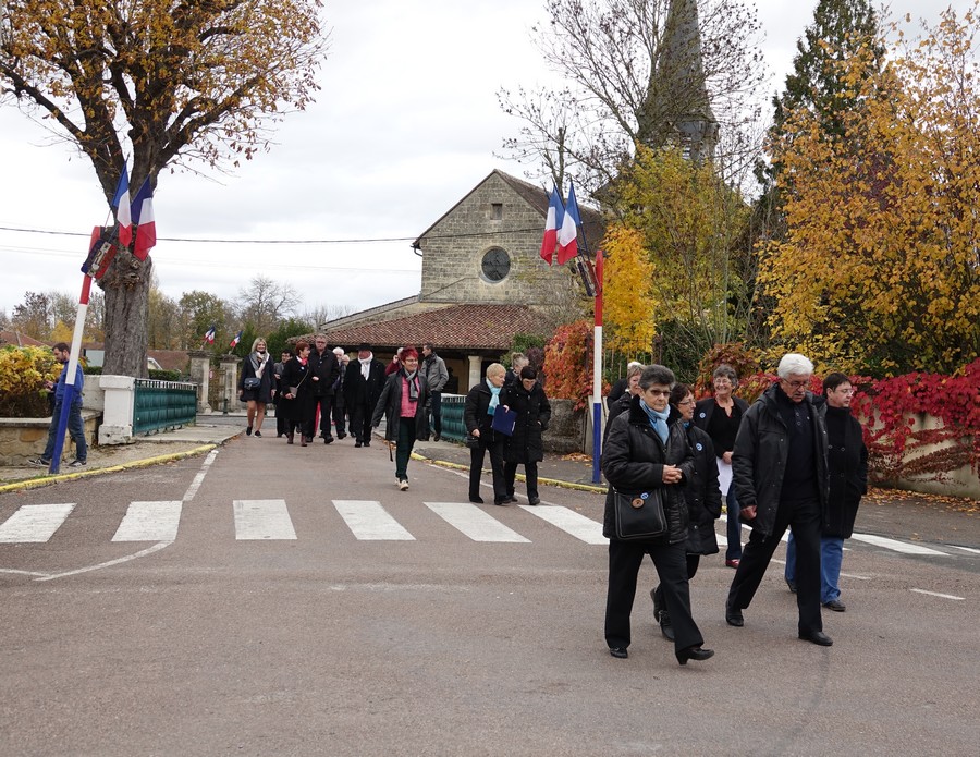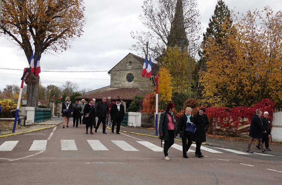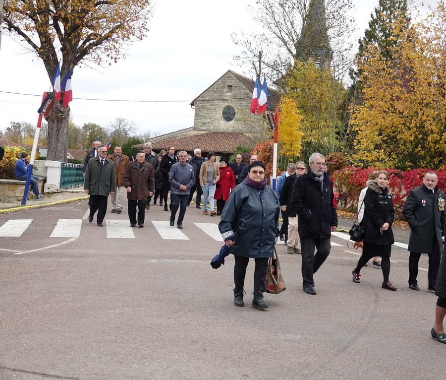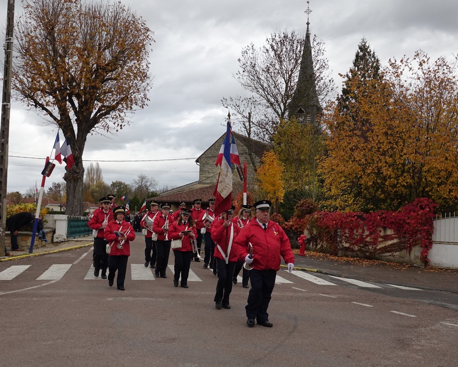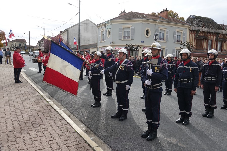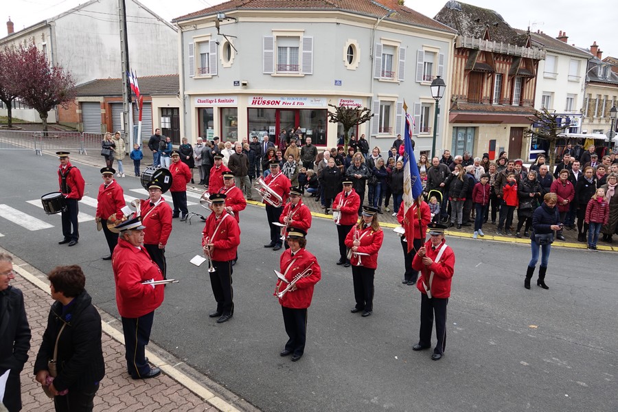 Le défilé accompagné par « Musique Champagne Parade » s’est ensuite rendu jusqu’à la mairie pour commémorer l’armistice devant le monument aux morts.