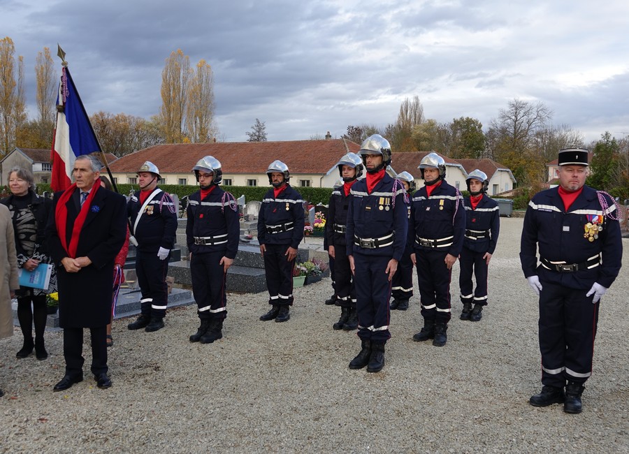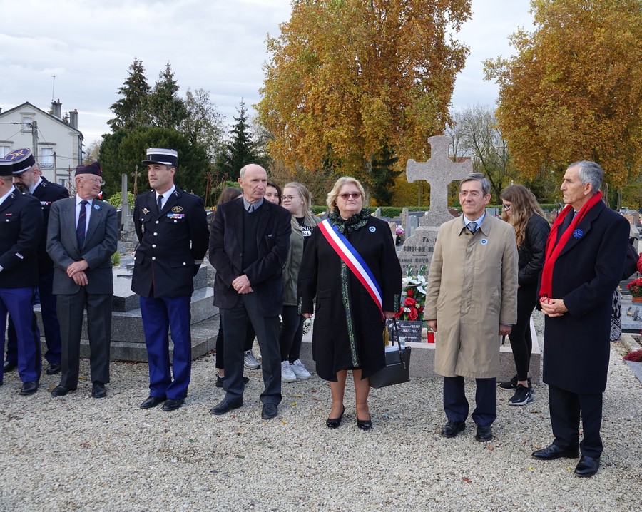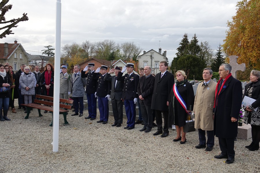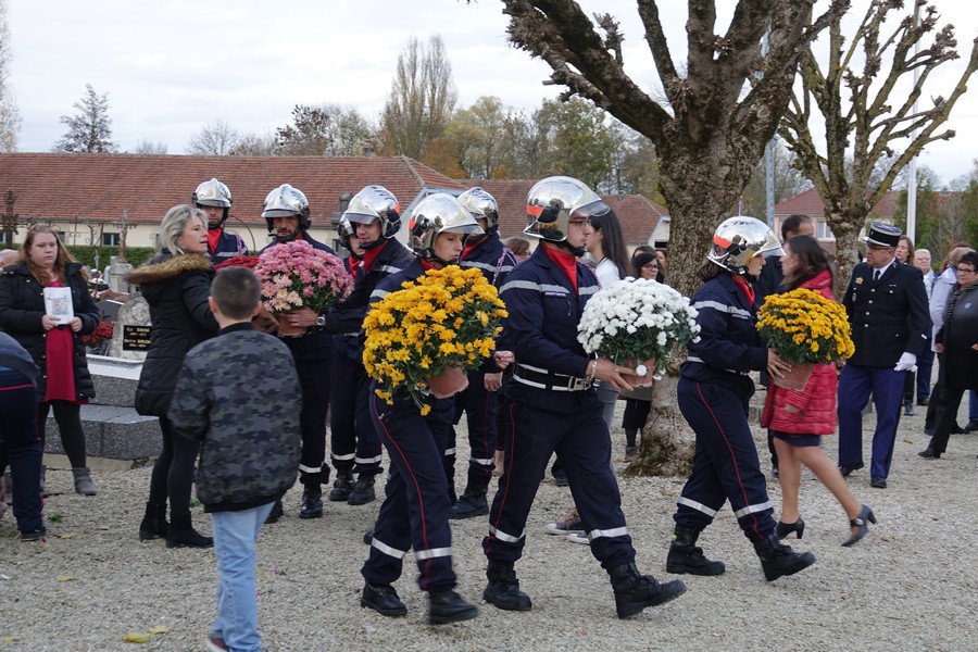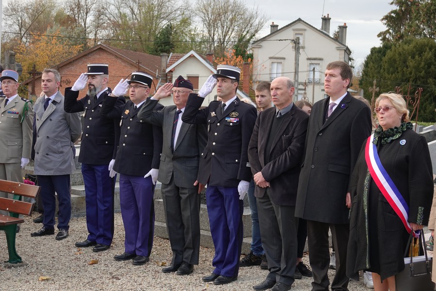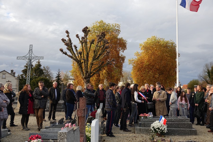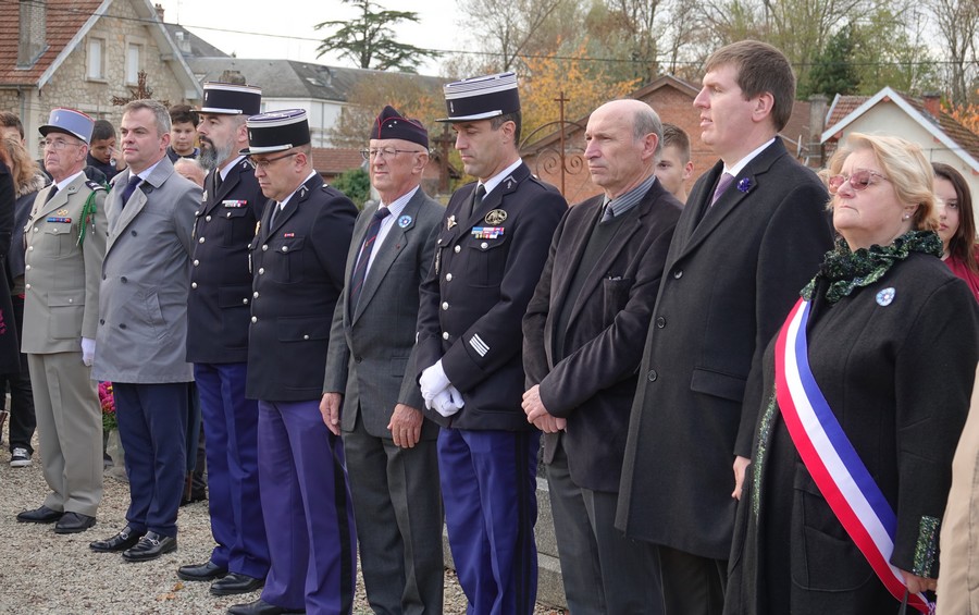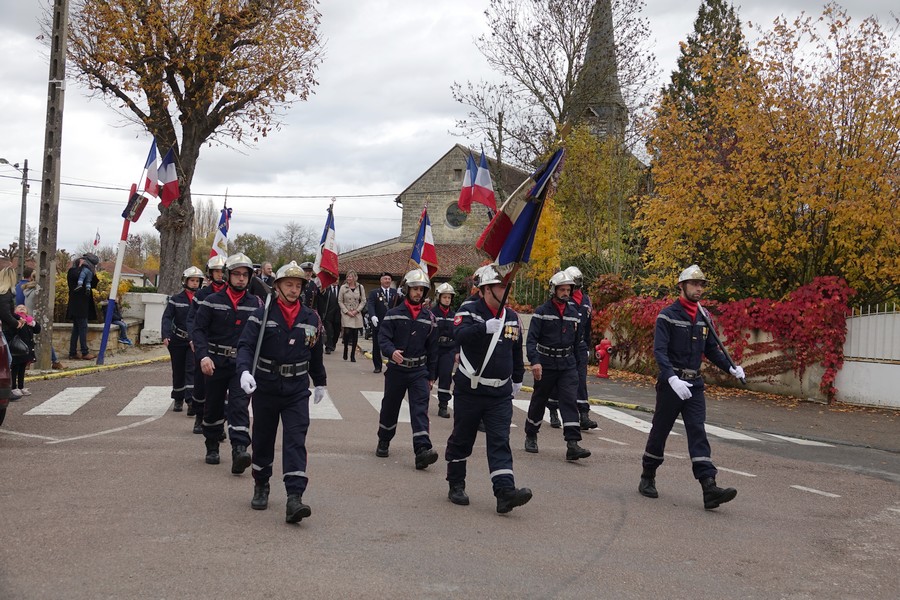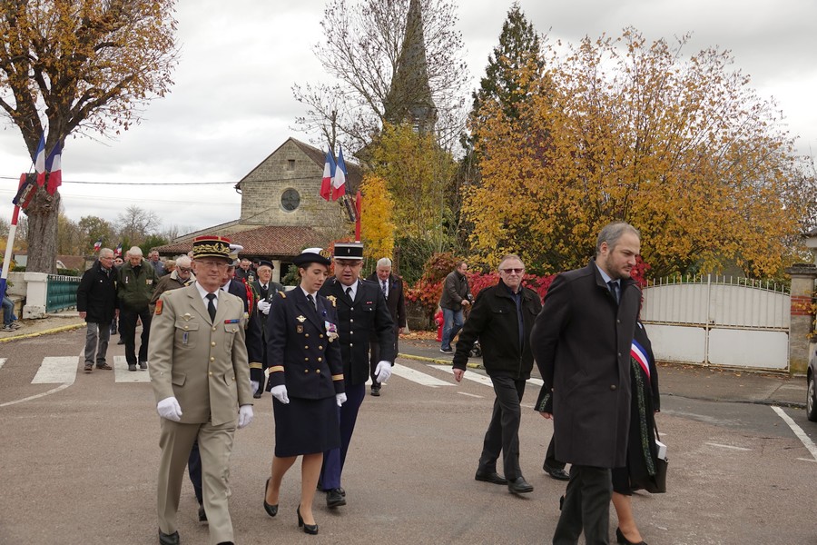Le défilé accompagné par « Musique Champagne Parade » s’est ensuite rendu jusqu’à la mairie pour commémorer l’armistice devant le monument aux morts.