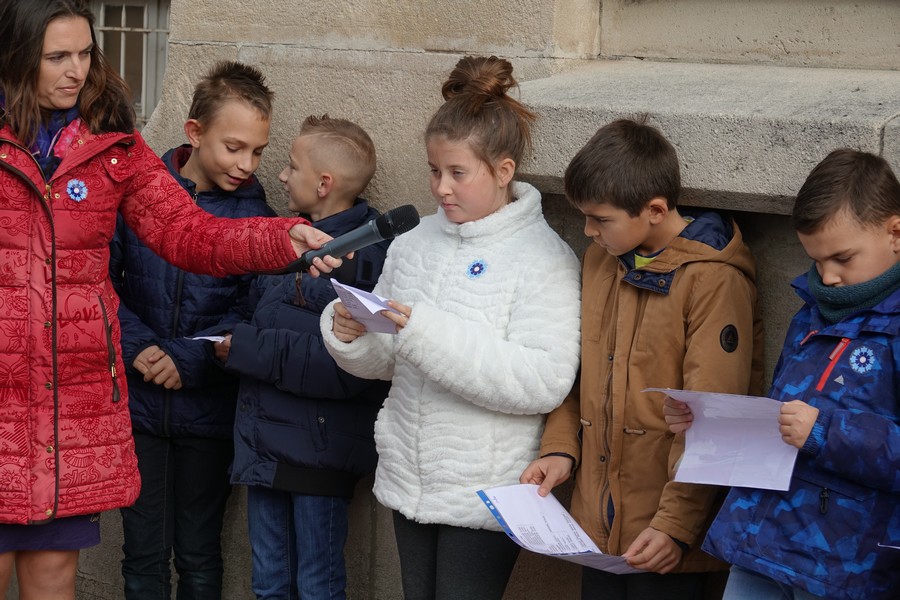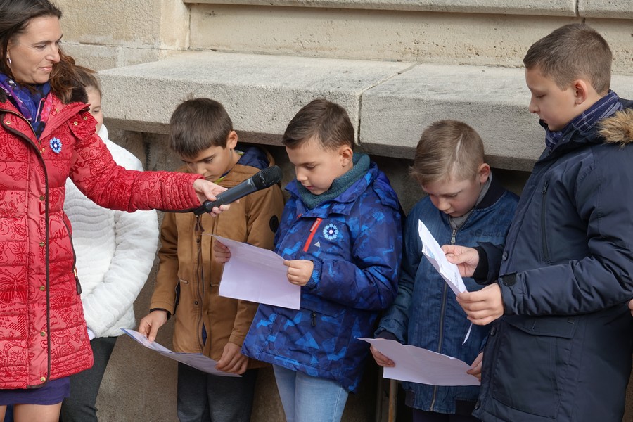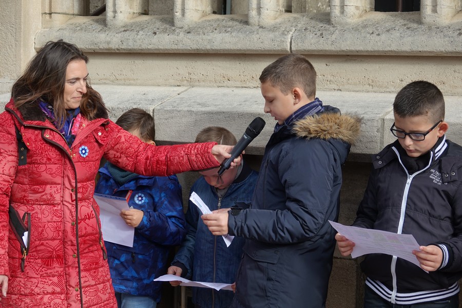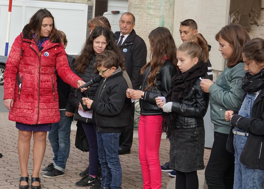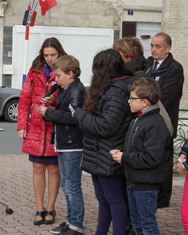 Les enfants des écoles Marcel AYME et Jeanne D’ARC ont rappelé les noms des civils et militaires morts pour la France durant le conflit 14-18.