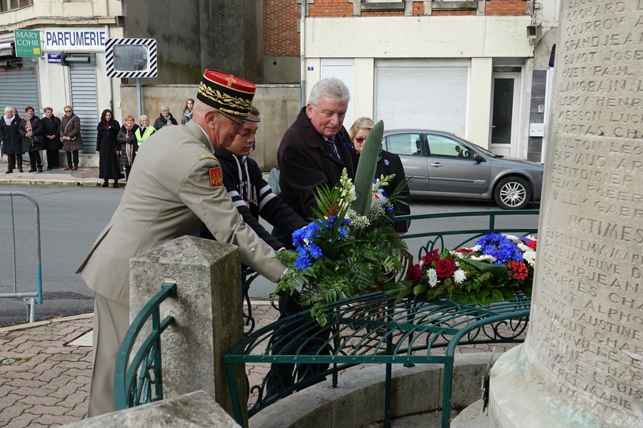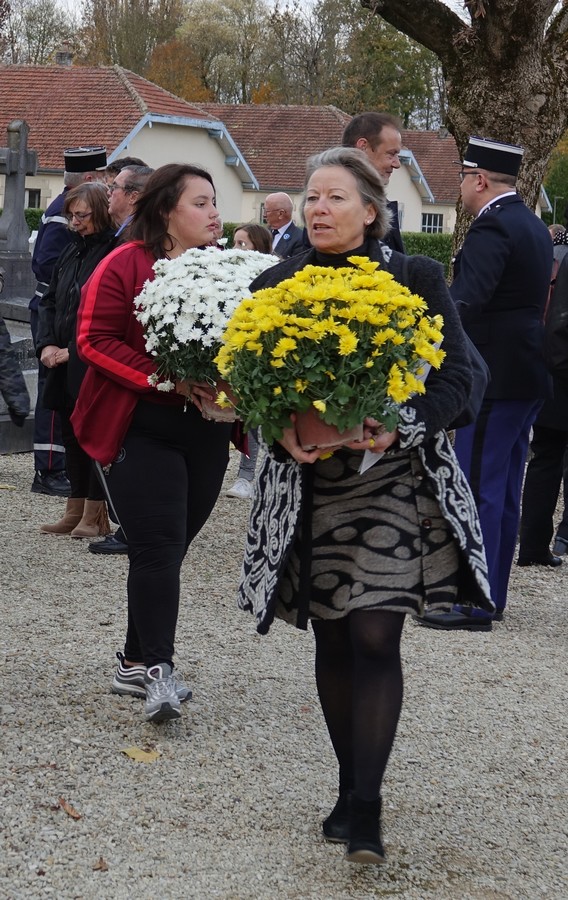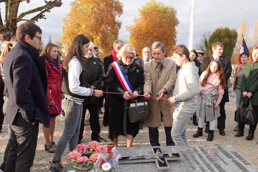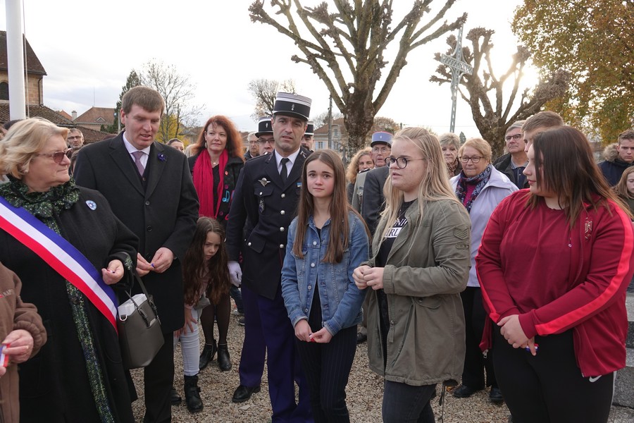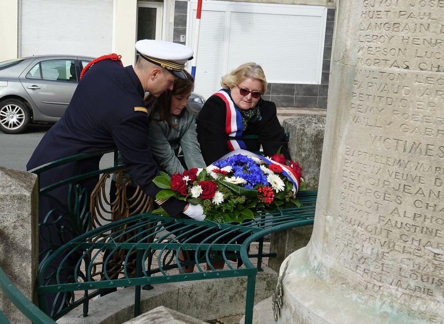 Deux gerbes de fleurs ont ensuite été déposées au pied du monument aux morts par les personnalités accompagnées d’enfants des écoles.
