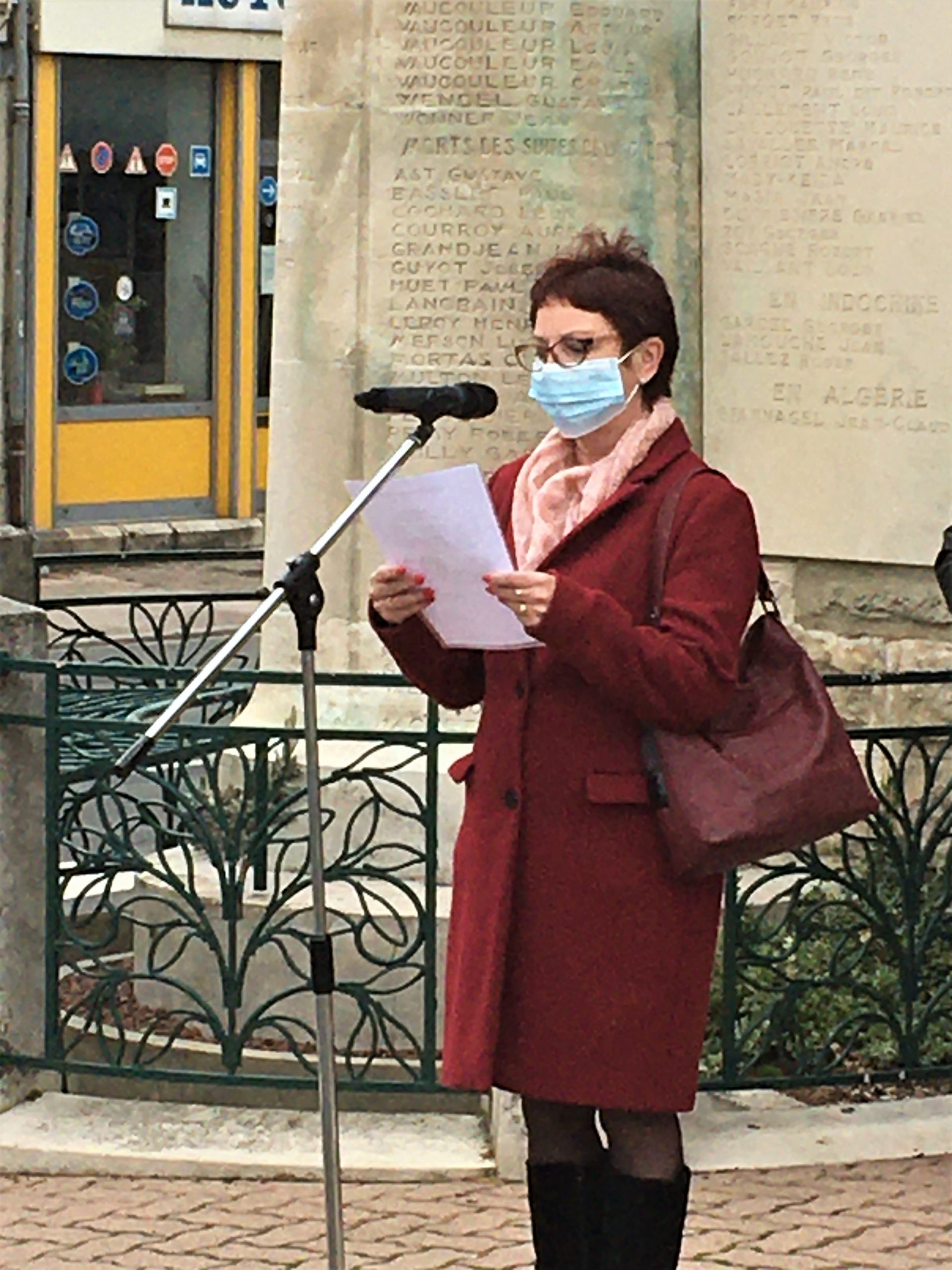 Monsieur le Maire a donné lecture du message de Madame Geneviève DARRIEUSSECQ, Ministre déléguée auprès de la Ministre des Armées, chargée de la Mémoire et des Anciens Combattants. Madame Liliane BERECHE, Première Ajointe, a ensuite énuméré les noms des Hommes et Femmes morts pour la France durant la guerre de 1939-1945.