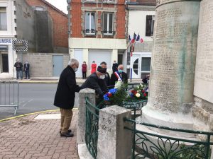 Puis Monsieur le Maire, accompagné de Jean-Pierre DRALET, Deuxième Adjoint, a déposé une gerbe de fleurs au pied du monument aux morts. Monsieur Jean POSSON, trésorier de l’Union Nationale des Combattants ainsi que le Général CIESLAK les ont suivis, en déposant une seconde gerbe de fleurs.