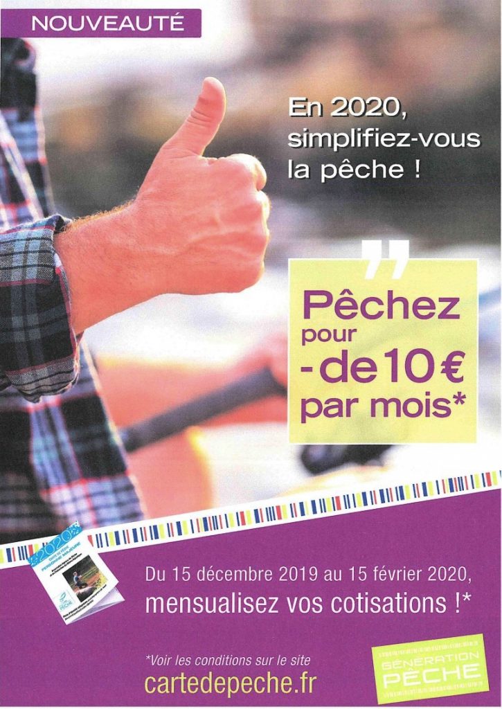 NOUVEAU : vous avez la possibilité de payer par mensualités votre carte de pêche 2020!