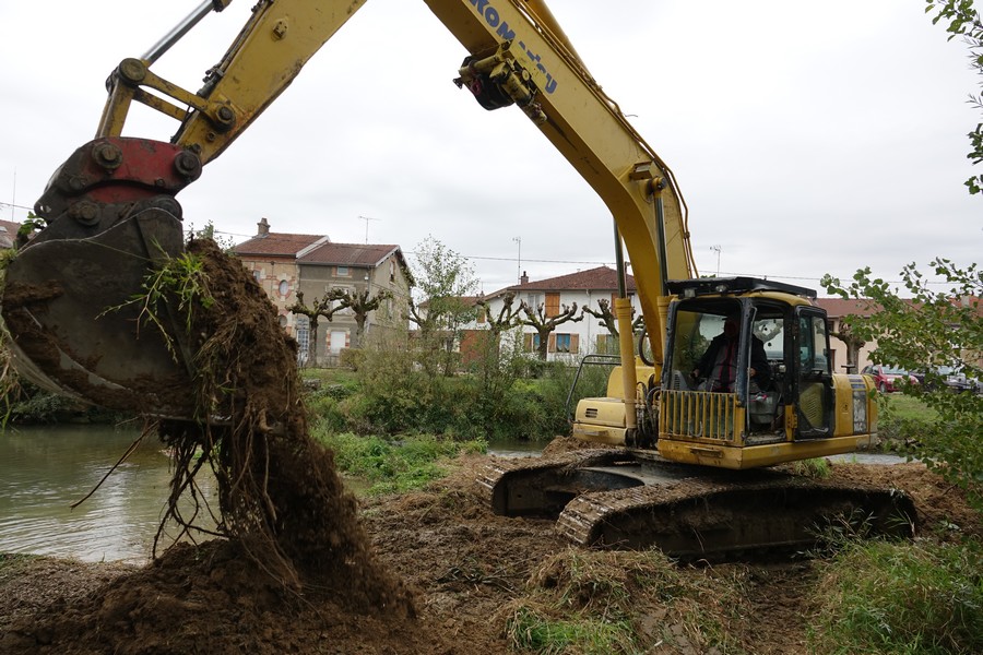 « Nous intervenons sur cette partie tous les 5 ans et c’est notre 5ème intervention » souligne M. LACHENAL responsable du syndicat, à la montée des eaux, le courant «attaquera » l’atterrissement et évitera la végétation de s’installer.
