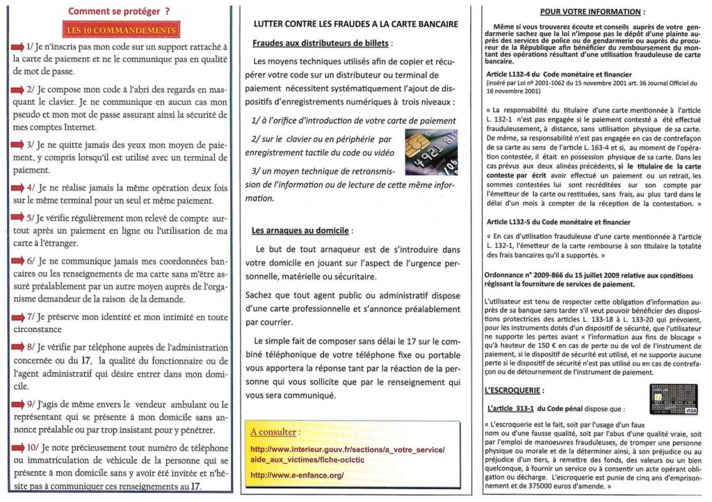 Info gendarmerie.Accueil / Actualités / Info gendarmerie. Afin de sensibiliser les habitants contre toutes les formes de délinquances, la gendarmerie vient d’éditer quelques conseils. Lien utile : https://www.interieur.gouv.fr/A-votre-service/Ma-securite/Conseils-pratiques/A-votre-domicile