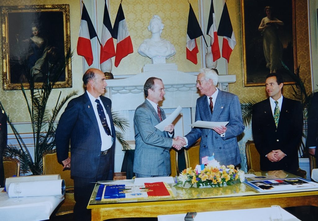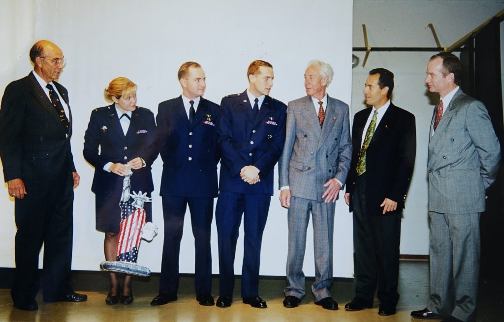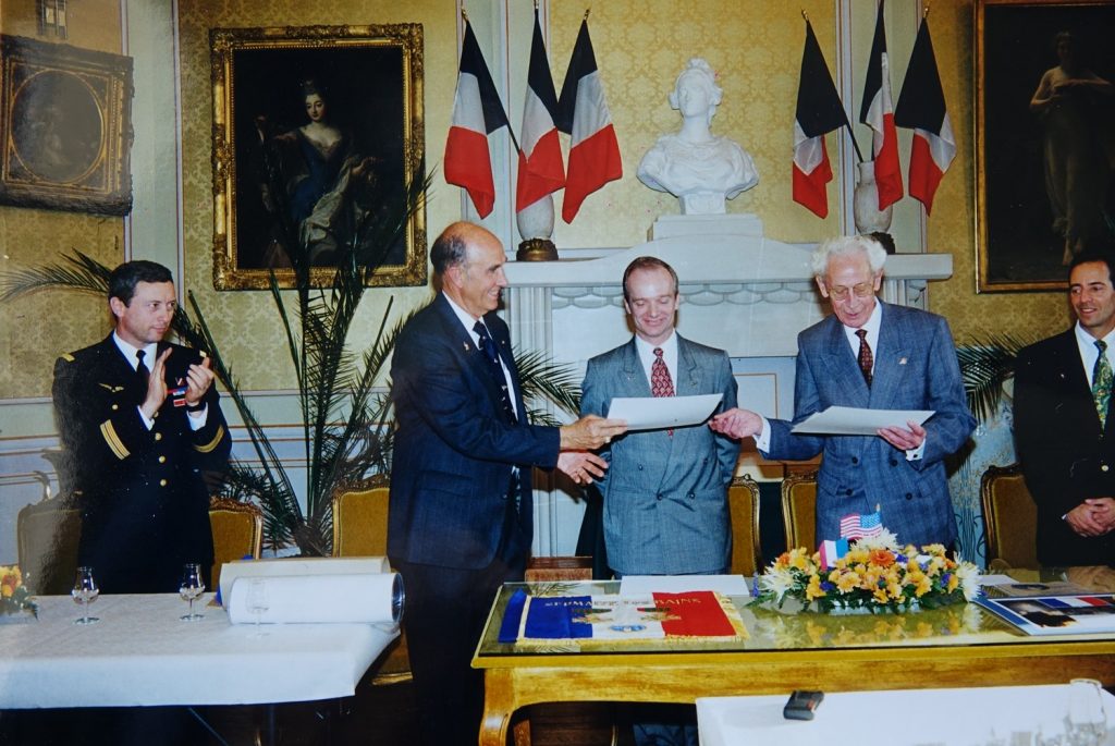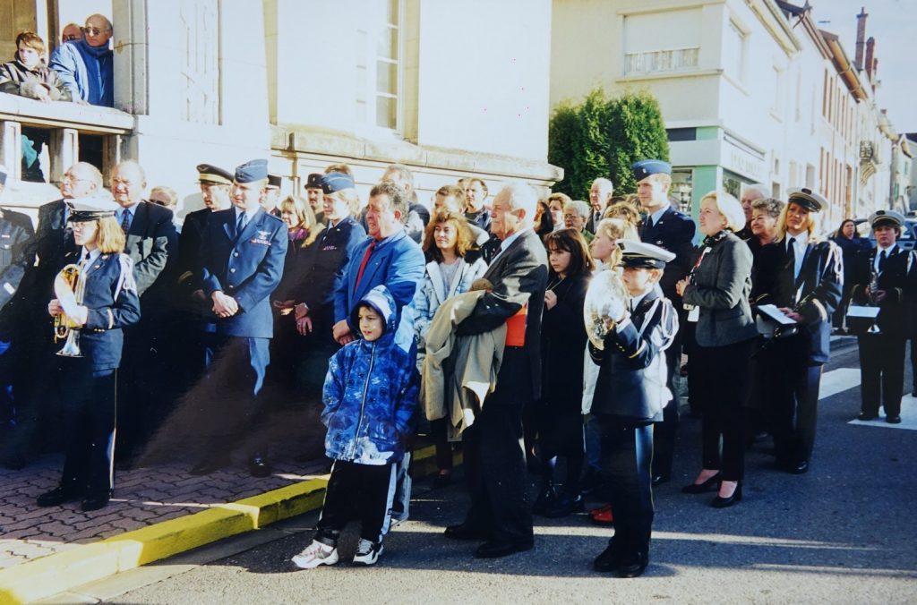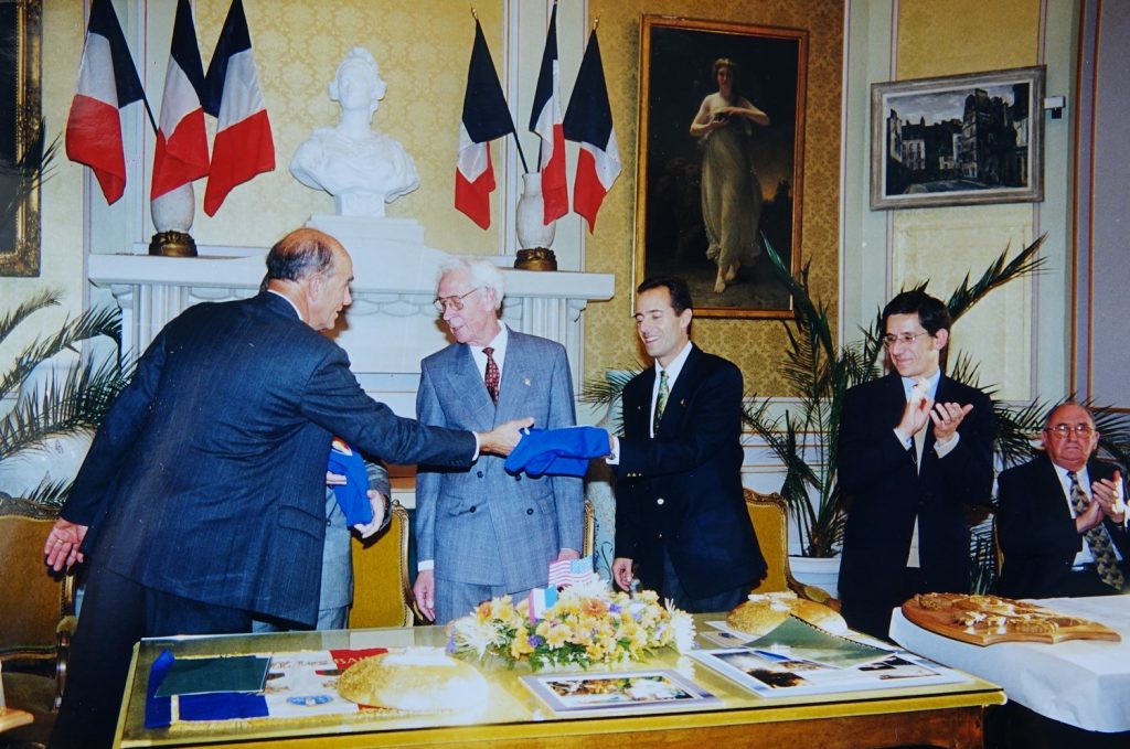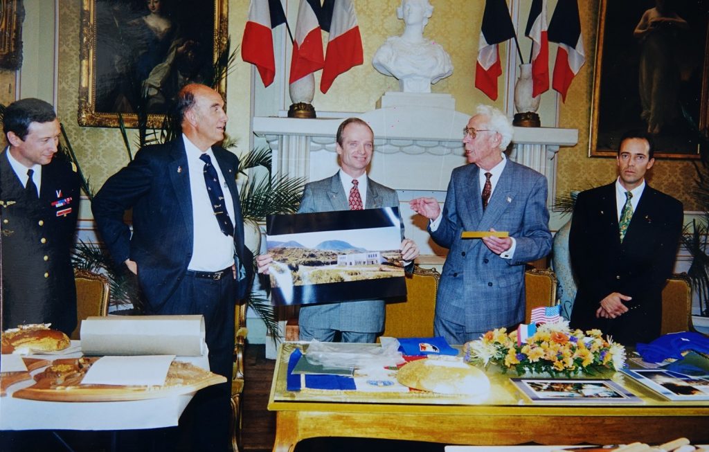 Le Drapeau avait été glissé dans ses bagages par l’un de ses anciens instructeurs à l’US air Force Academy de Colorado Springs; Le  Lieutenant Colonel Jacques ADNET, natif de Sermaize où ses parents étaient maraîchers.