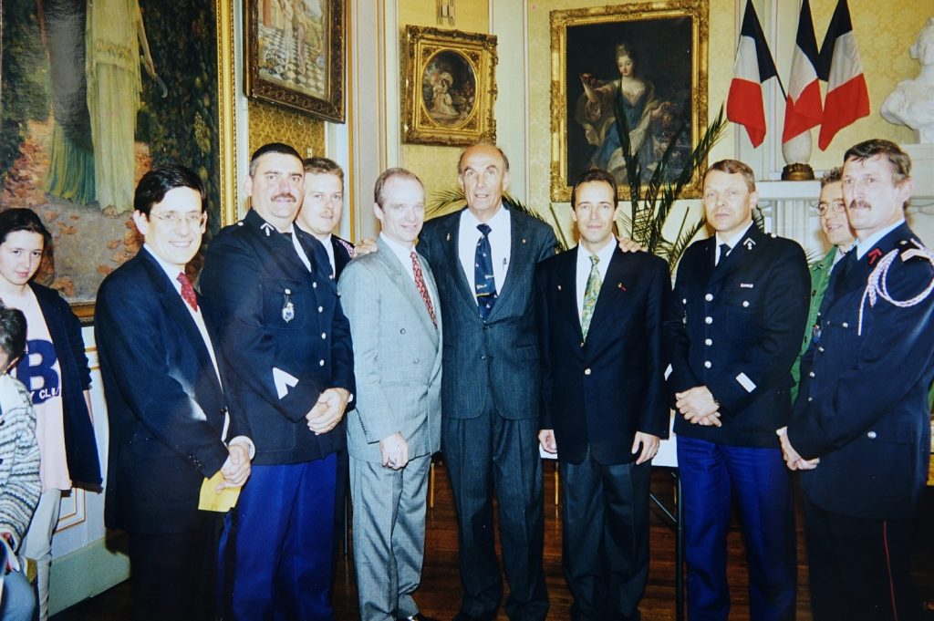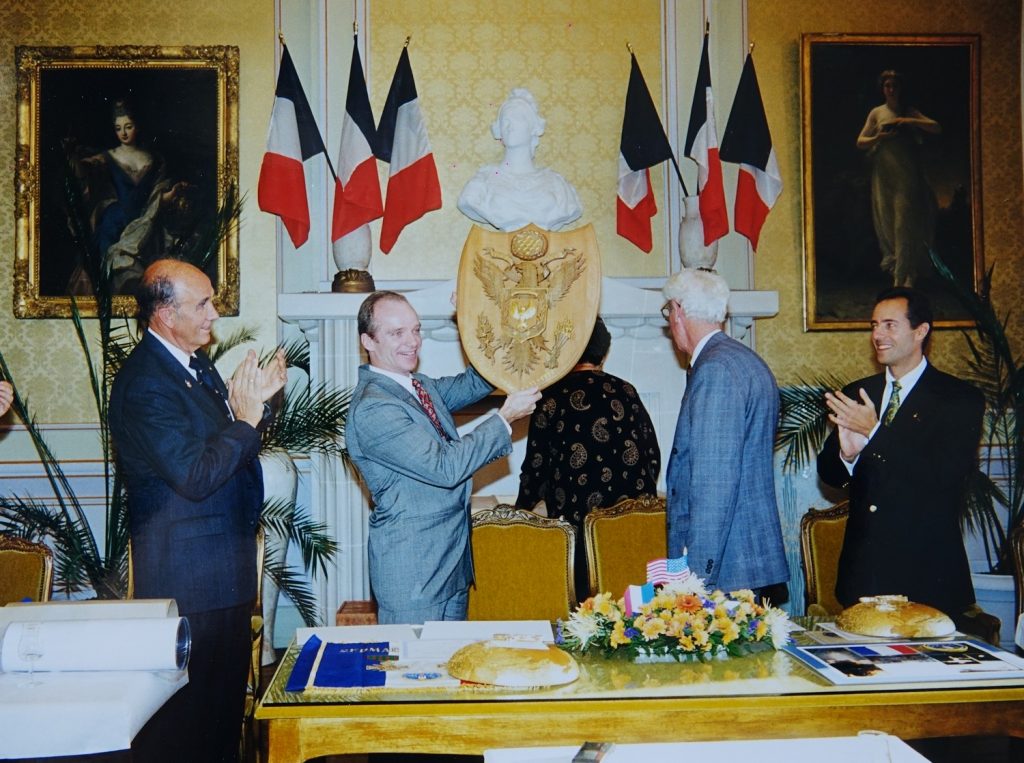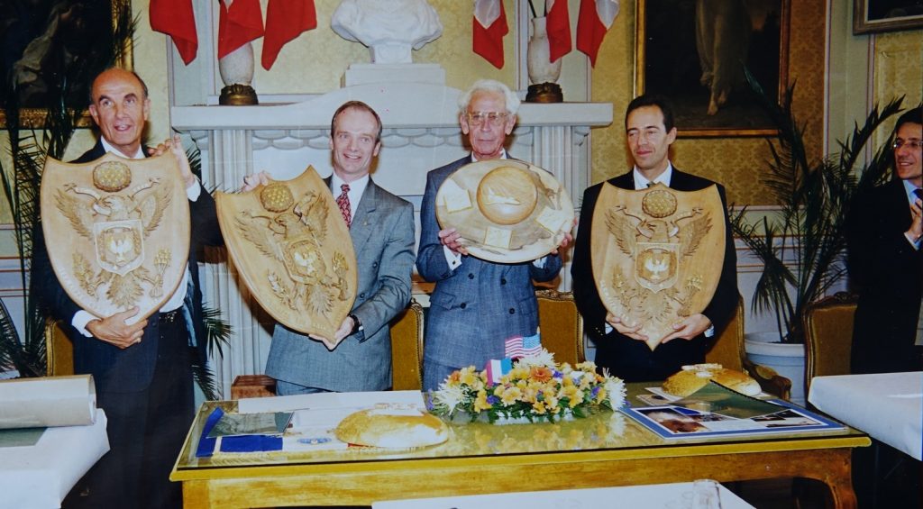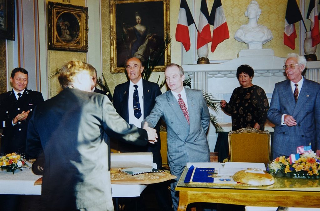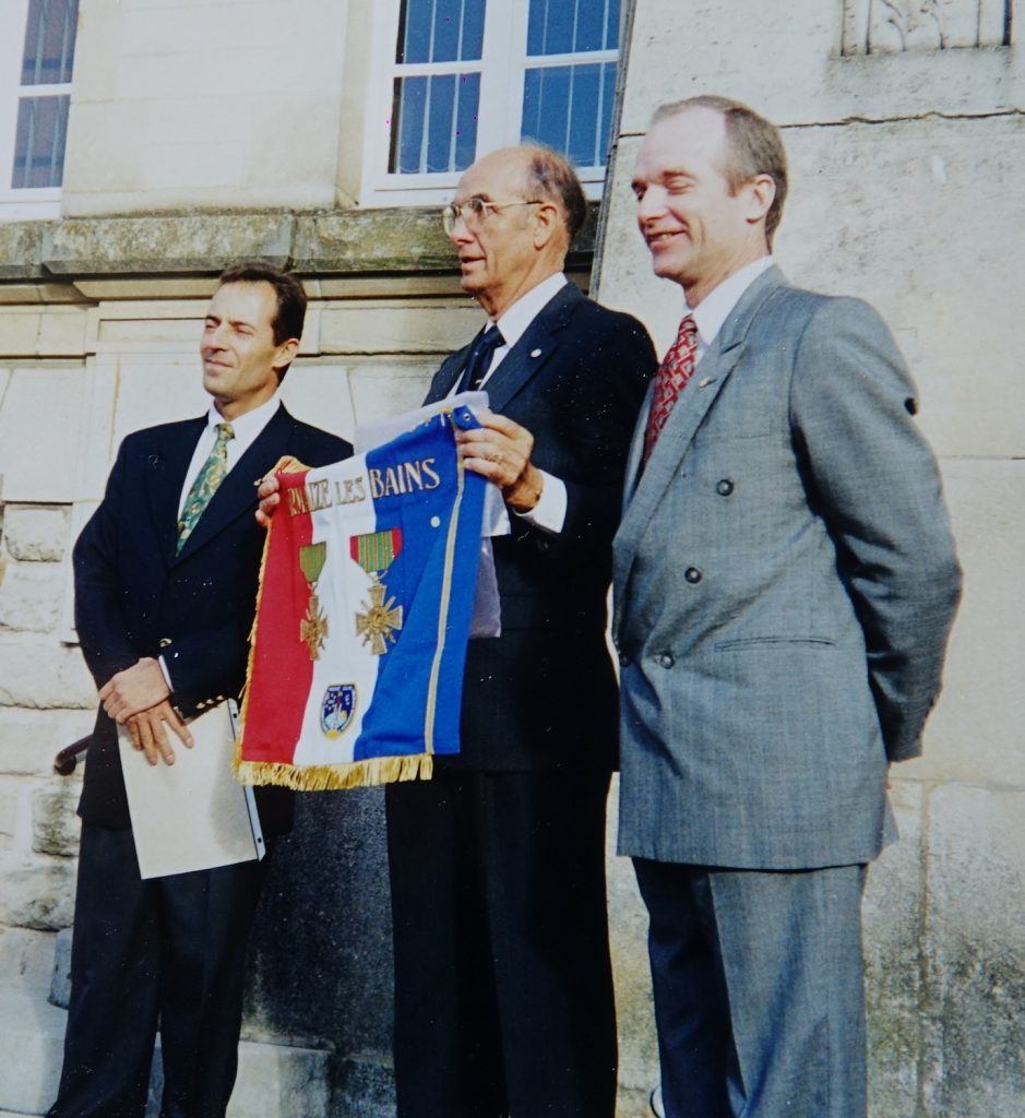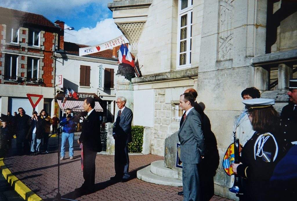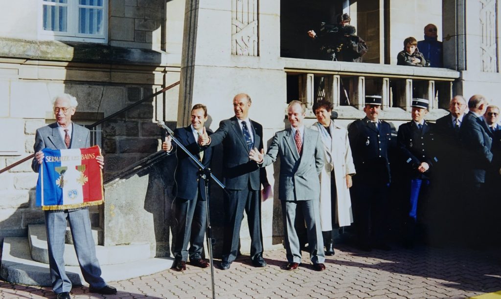 Jacques ADNET, l’enfant du pays avait rencontré ce jour d’octobre 1995 des enfants de nos écoles, avait remis à Lucien BLAISE, maire, un fanion portant sa devise: