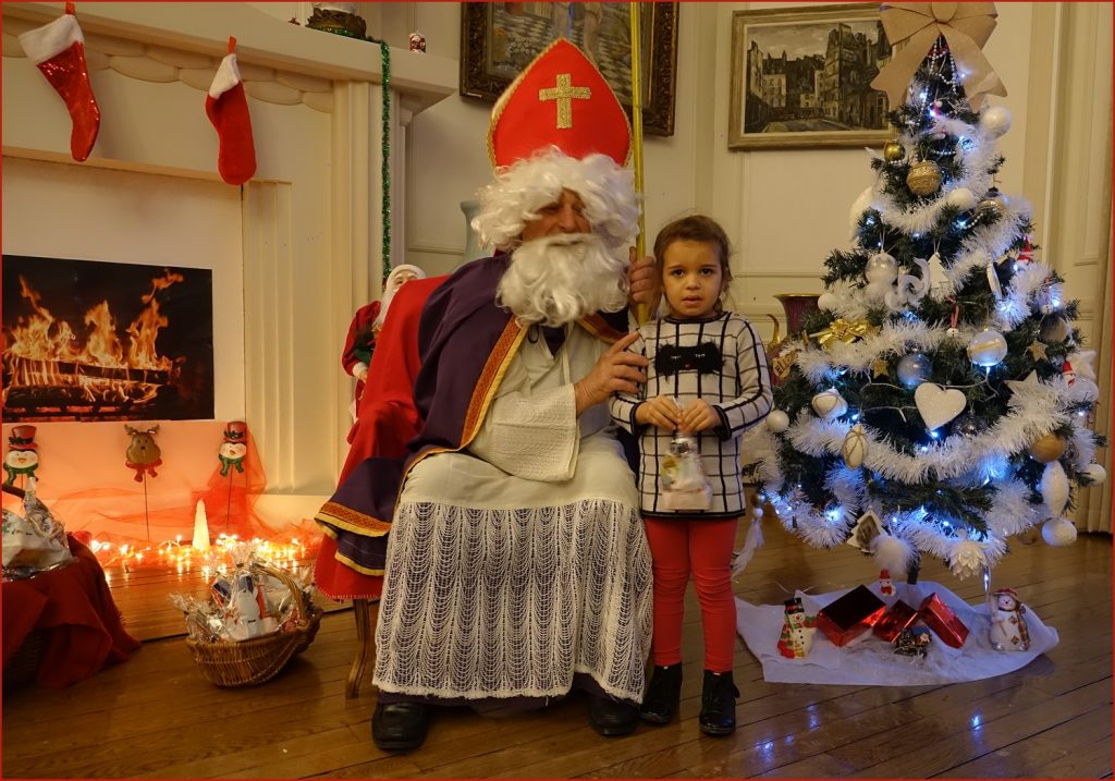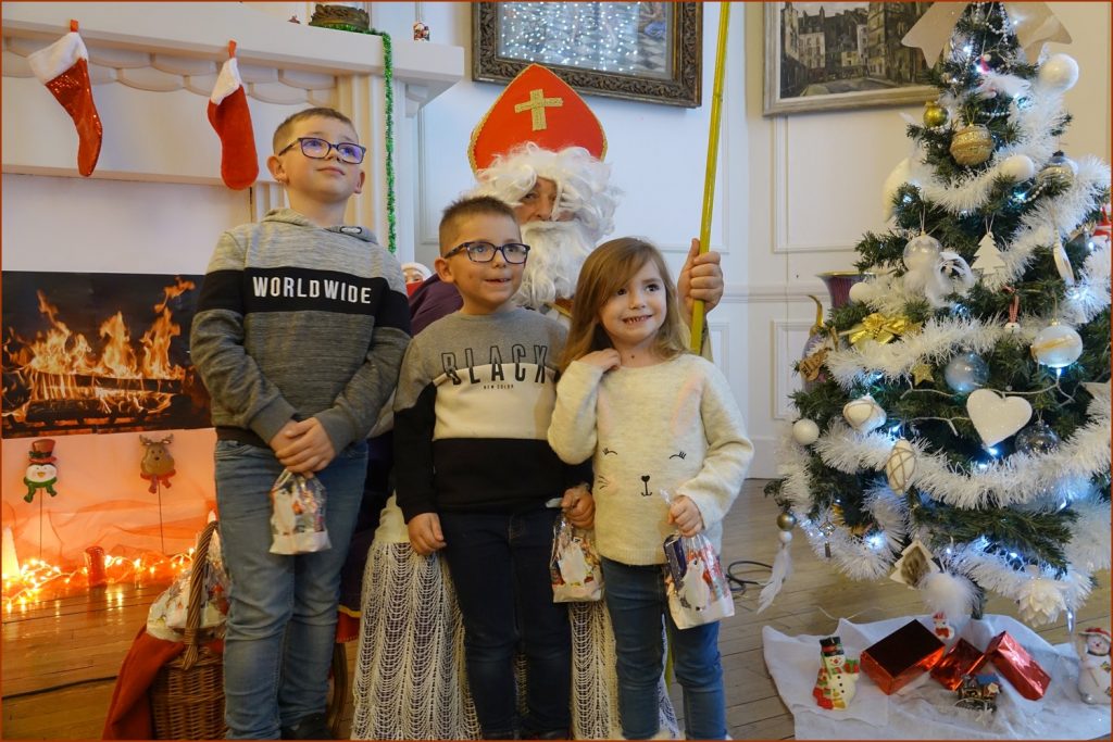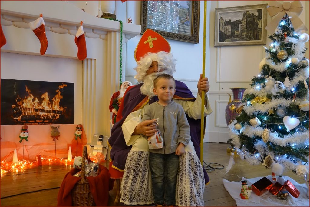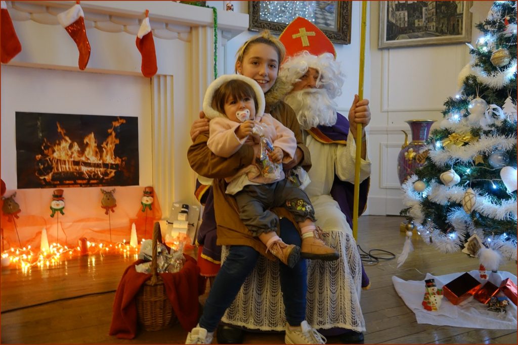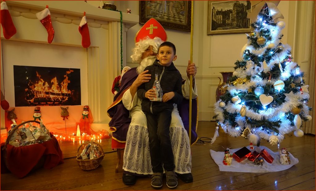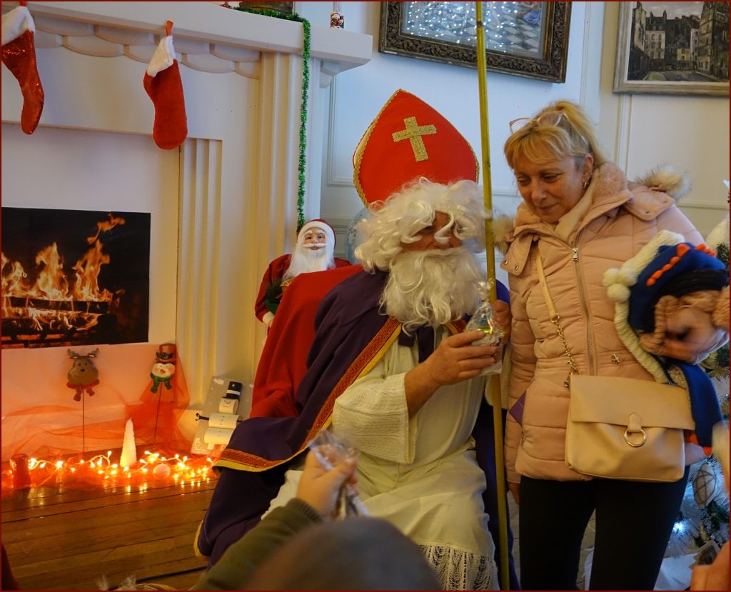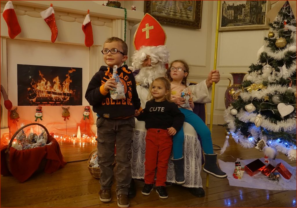 Un solide gaillard le  Saint NICOLAS, malgré son grand âge ses genoux n’ont pas fléchi à la centaine de petits  qui se sont prêtés à la traditionnelle photo, même pour ceux qui étaient beaucoup plus grands.
