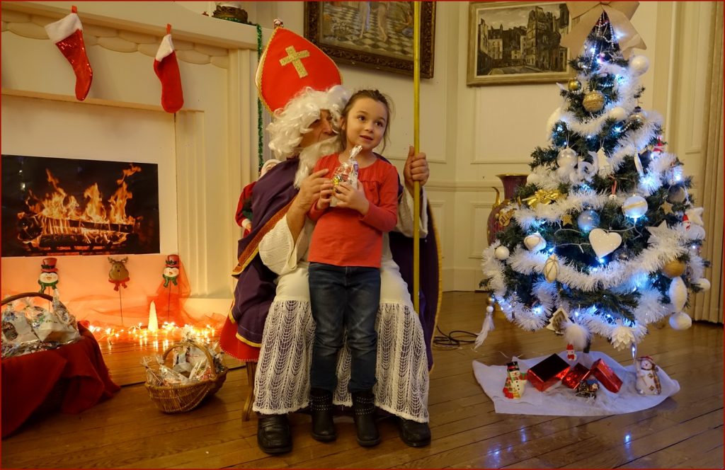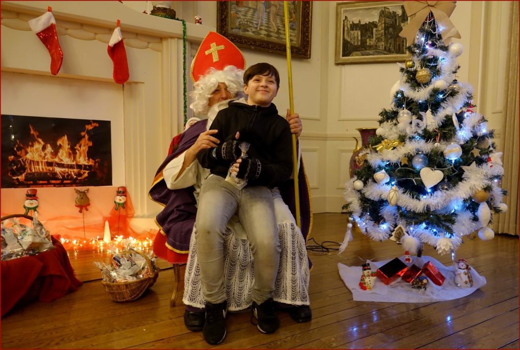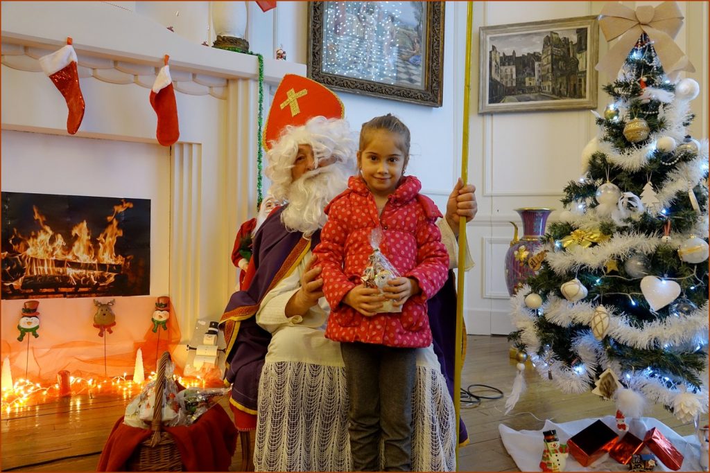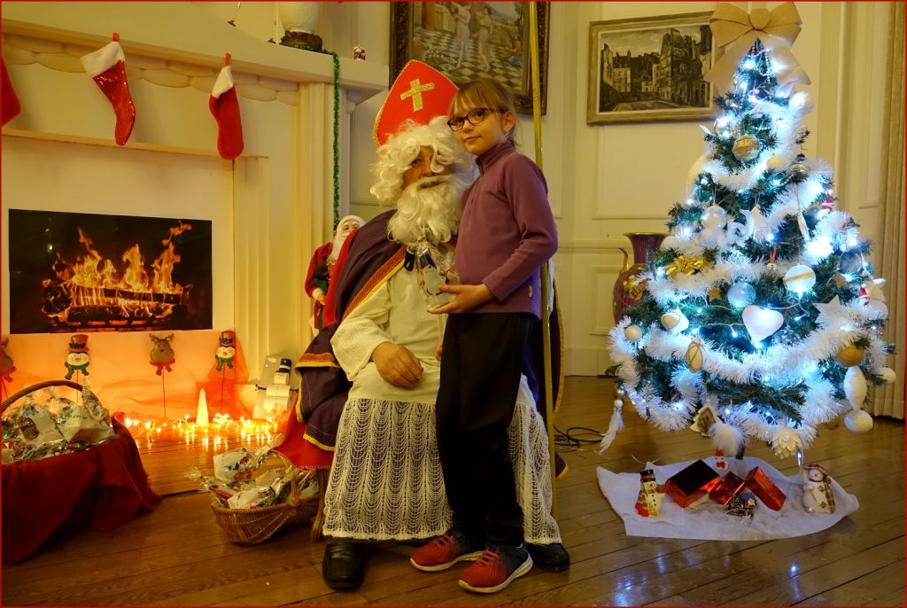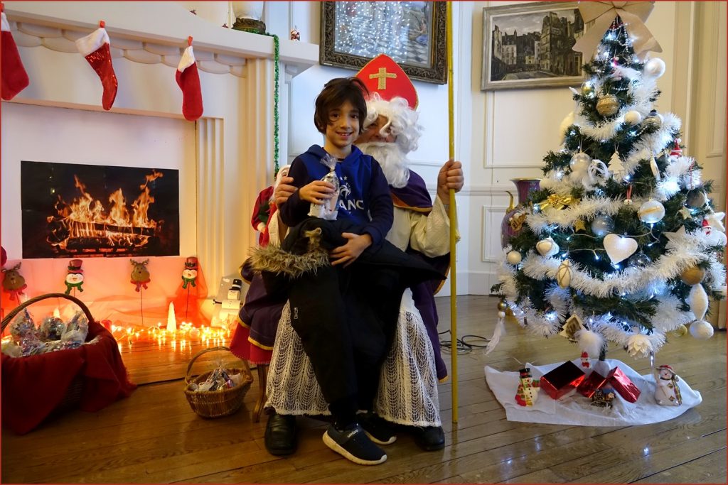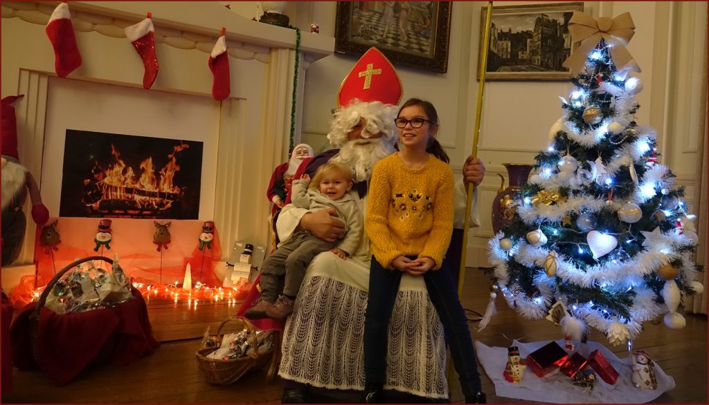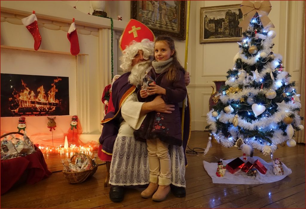 Un solide gaillard le  Saint NICOLAS, malgré son grand âge ses genoux n’ont pas fléchi à la centaine de petits  qui se sont prêtés à la traditionnelle photo, même pour ceux qui étaient beaucoup plus grands.