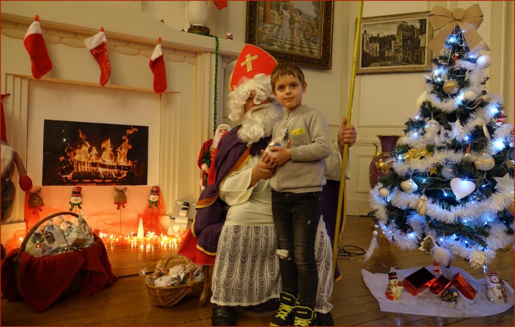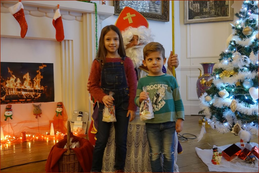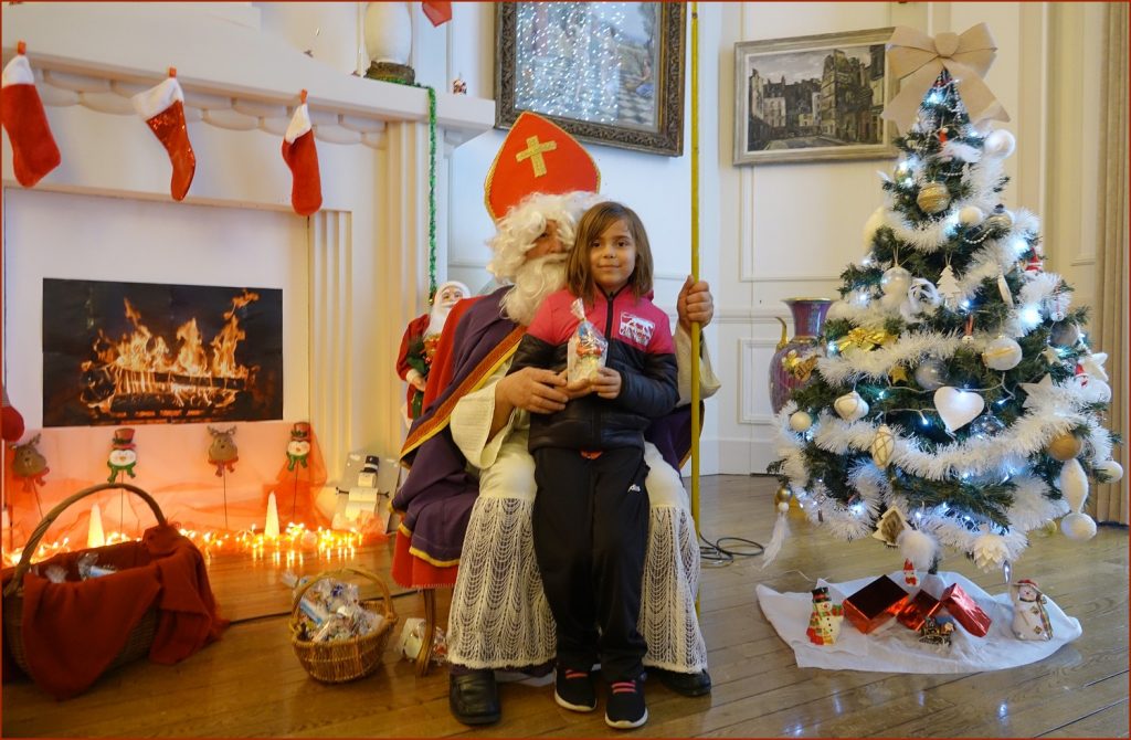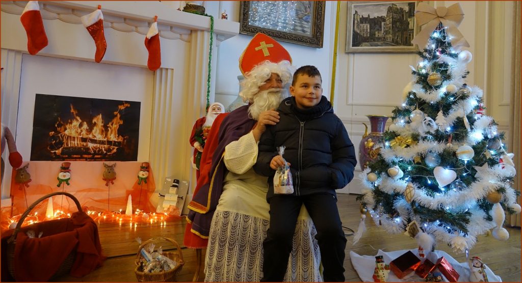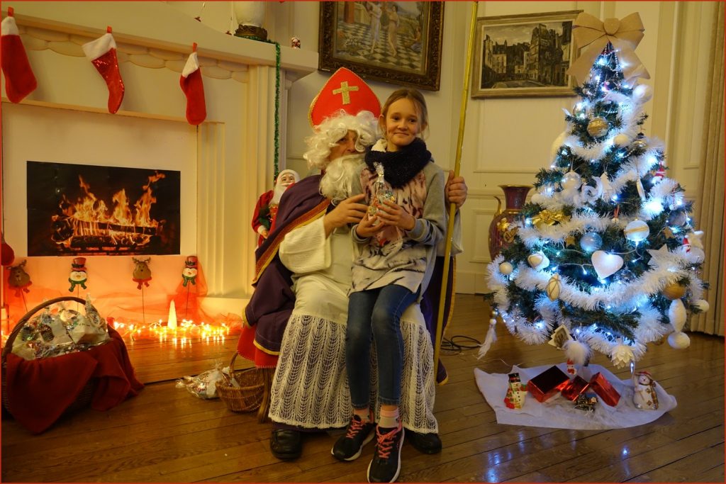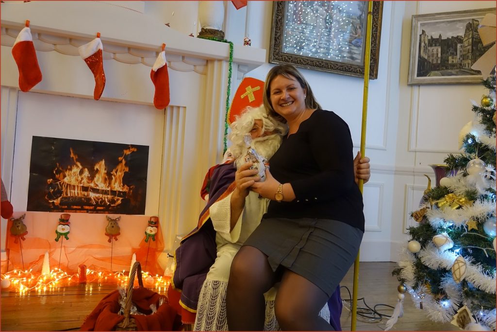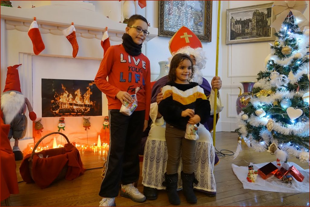 Un solide gaillard le  Saint NICOLAS, malgré son grand âge ses genoux n’ont pas fléchi à la centaine de petits  qui se sont prêtés à la traditionnelle photo, même pour ceux qui étaient beaucoup plus grands.