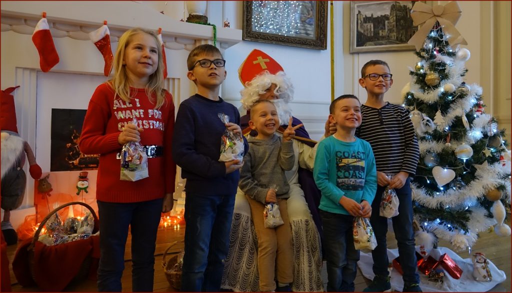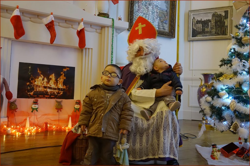 Les plus petits, intimidés, s’accrochaient à leur maman, curieux d’aller à la rencontre de ce vieux bonhomme qui chaque année réapparaît  le 6 décembre.