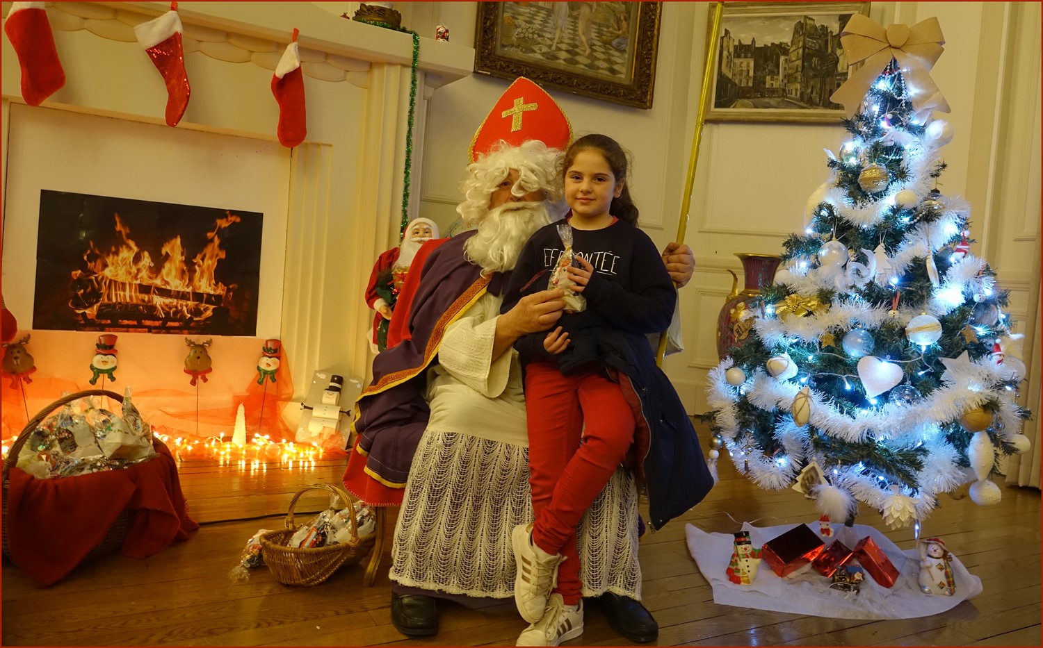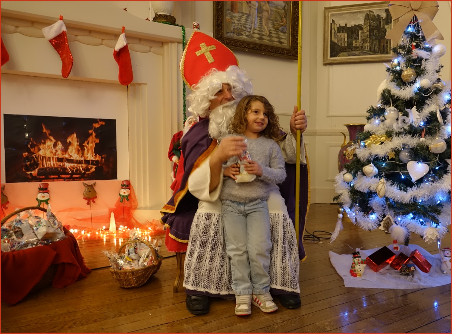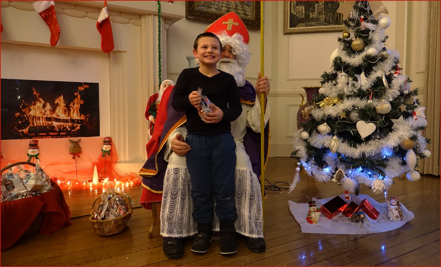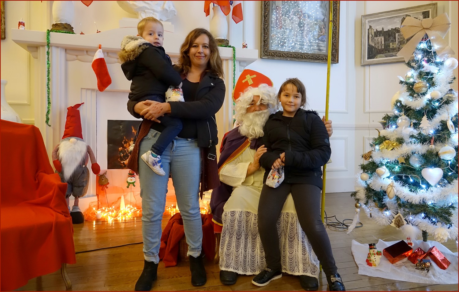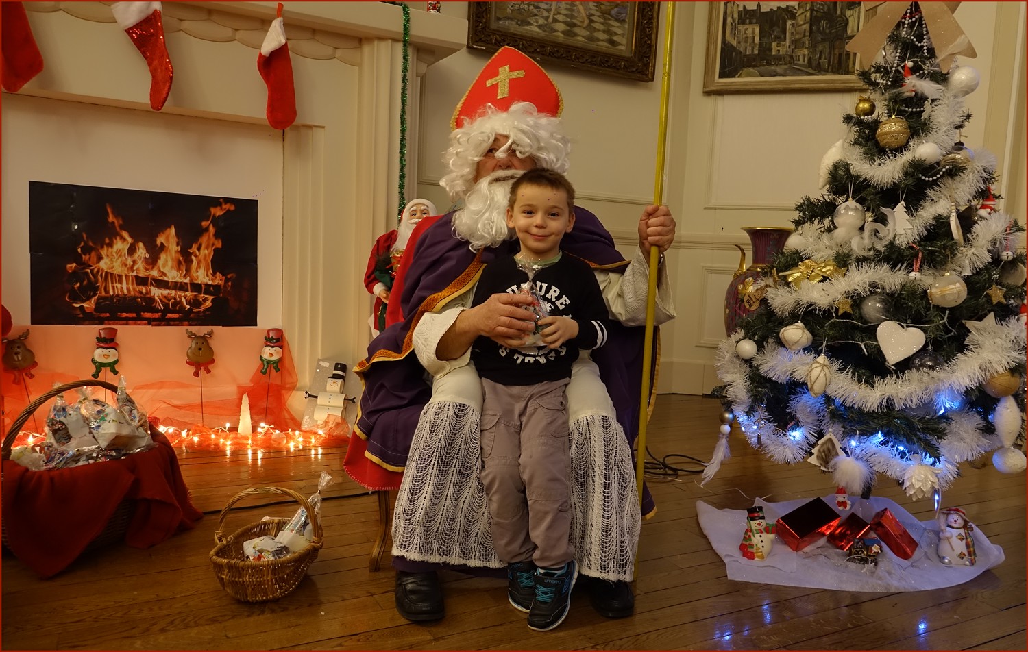 Un solide gaillard le  Saint NICOLAS, malgré son grand âge ses genoux n’ont pas fléchi à la centaine de petits  qui se sont prêtés à la traditionnelle photo, même pour ceux qui étaient beaucoup plus grands.