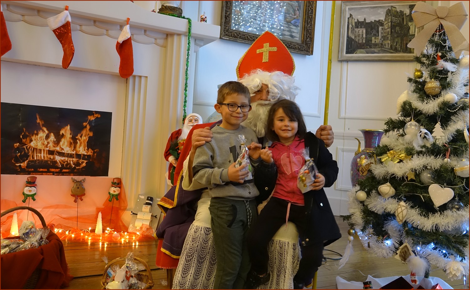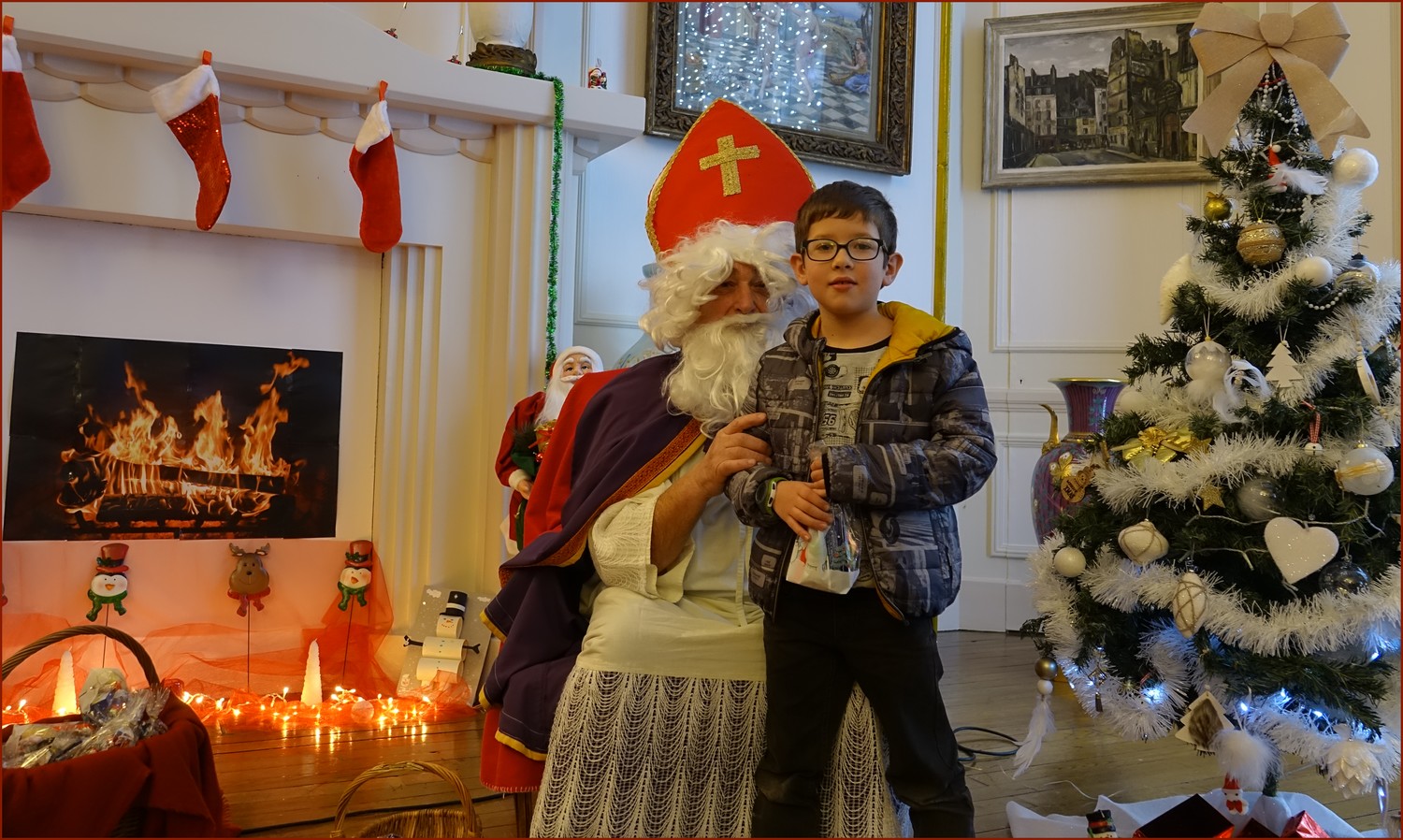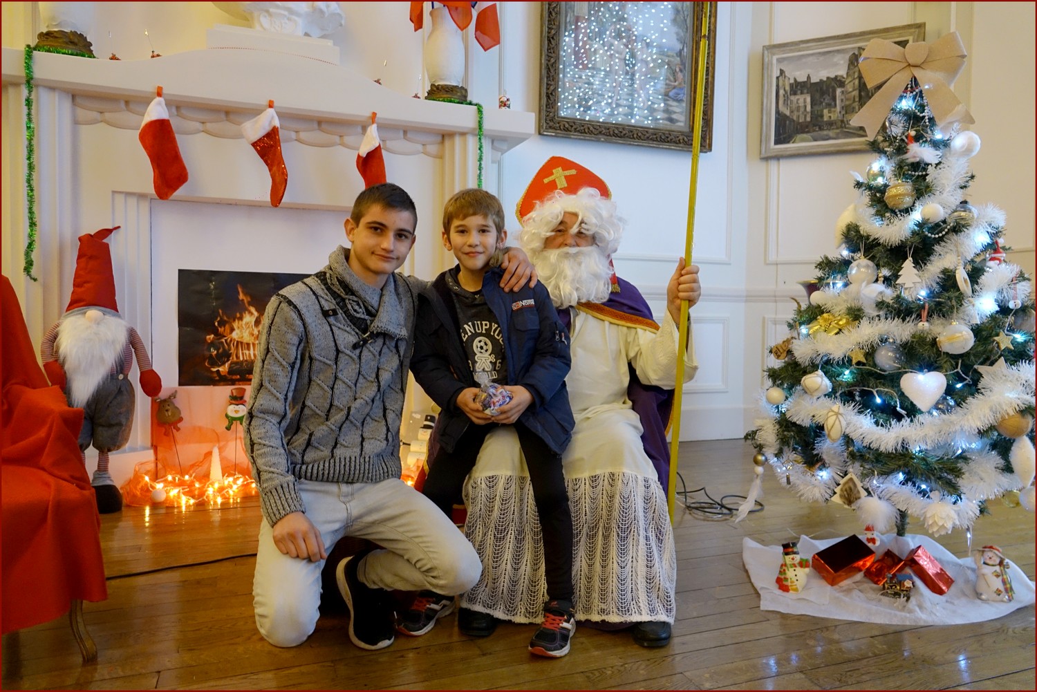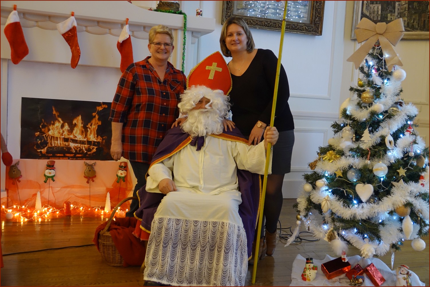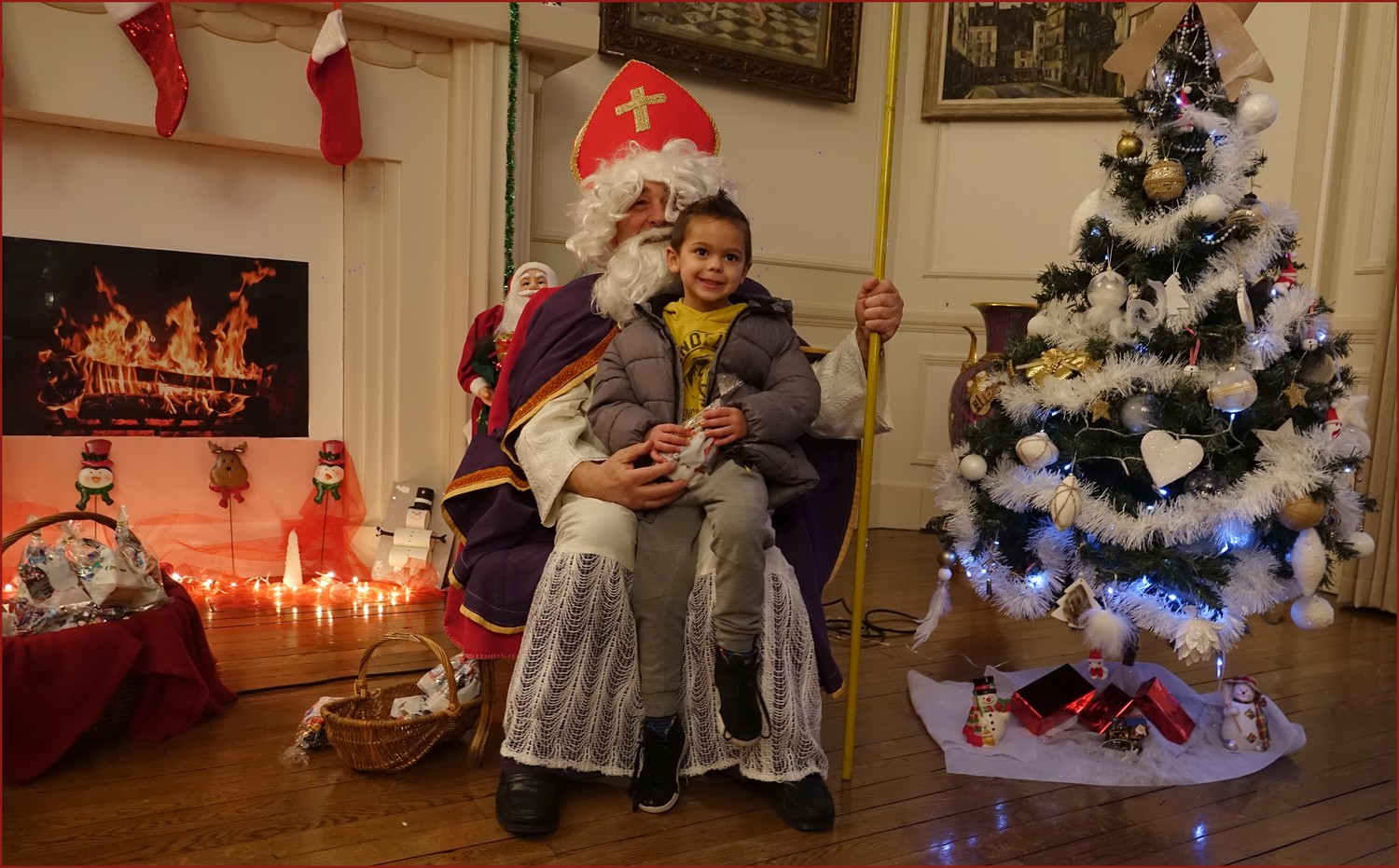 Un solide gaillard le  Saint NICOLAS, malgré son grand âge ses genoux n’ont pas fléchi à la centaine de petits  qui se sont prêtés à la traditionnelle photo, même pour ceux qui étaient beaucoup plus grands.