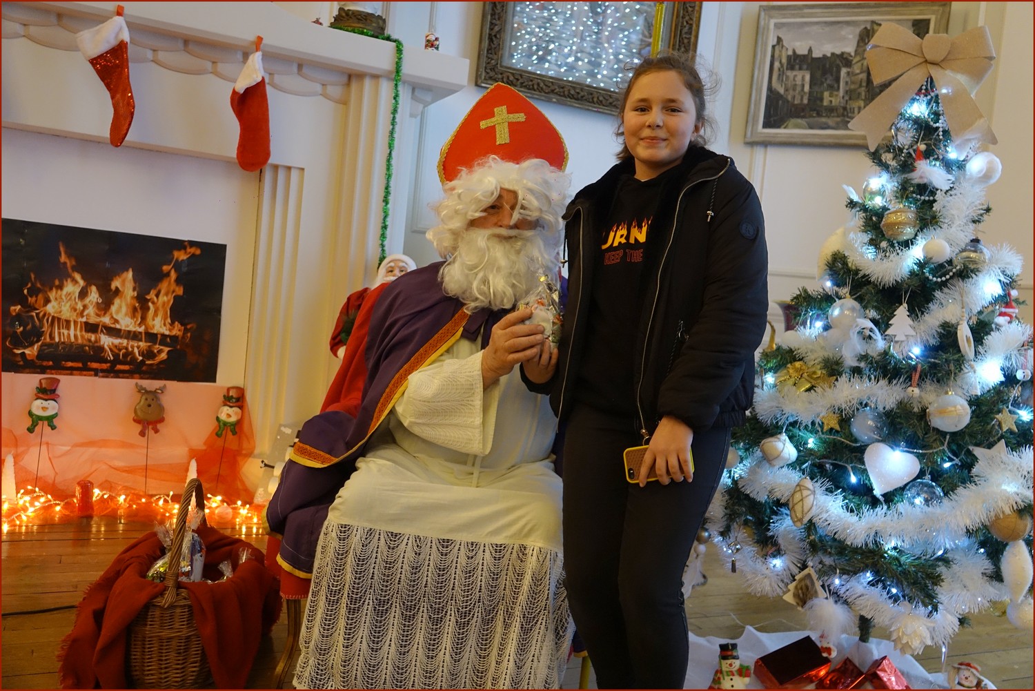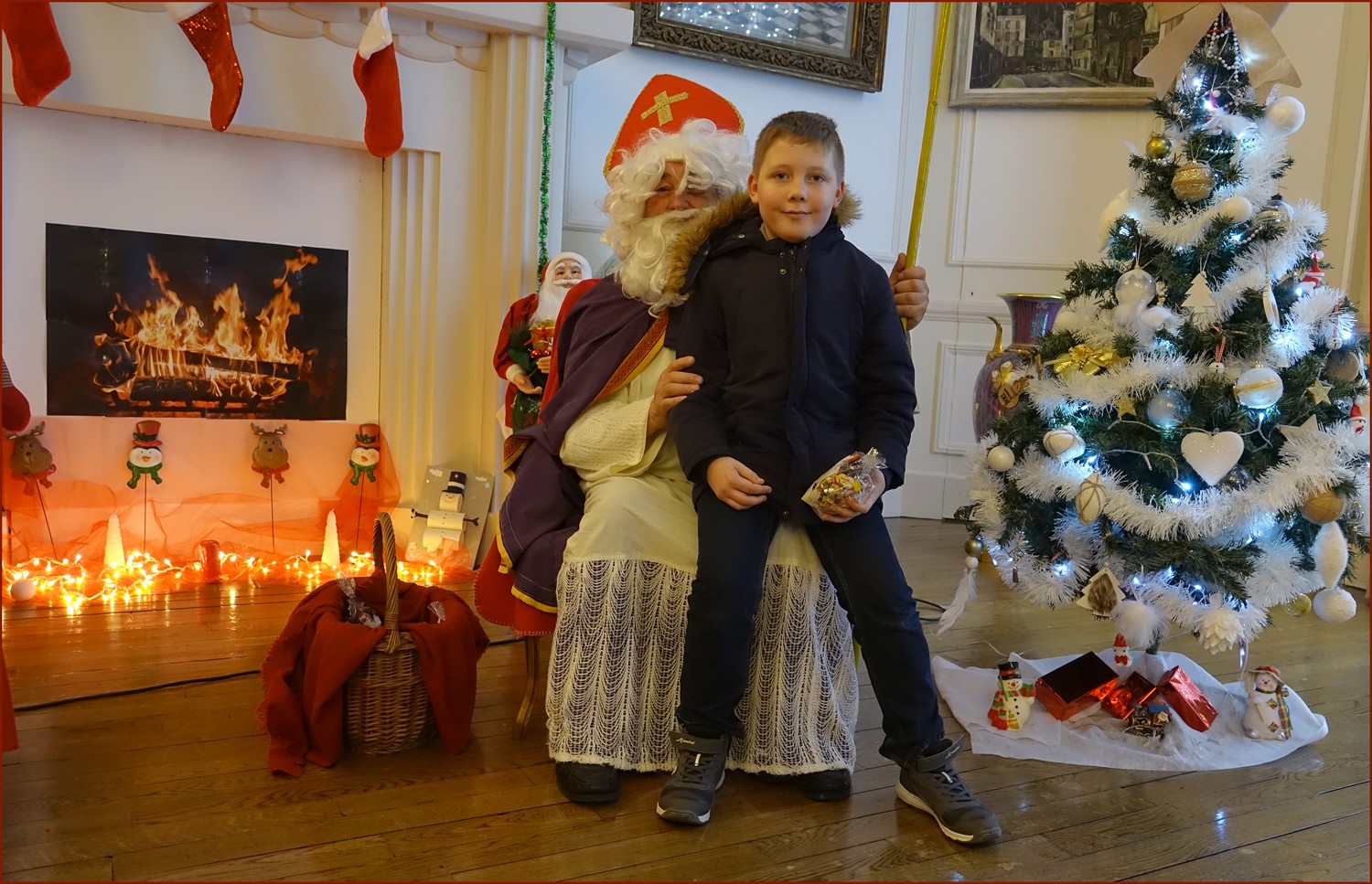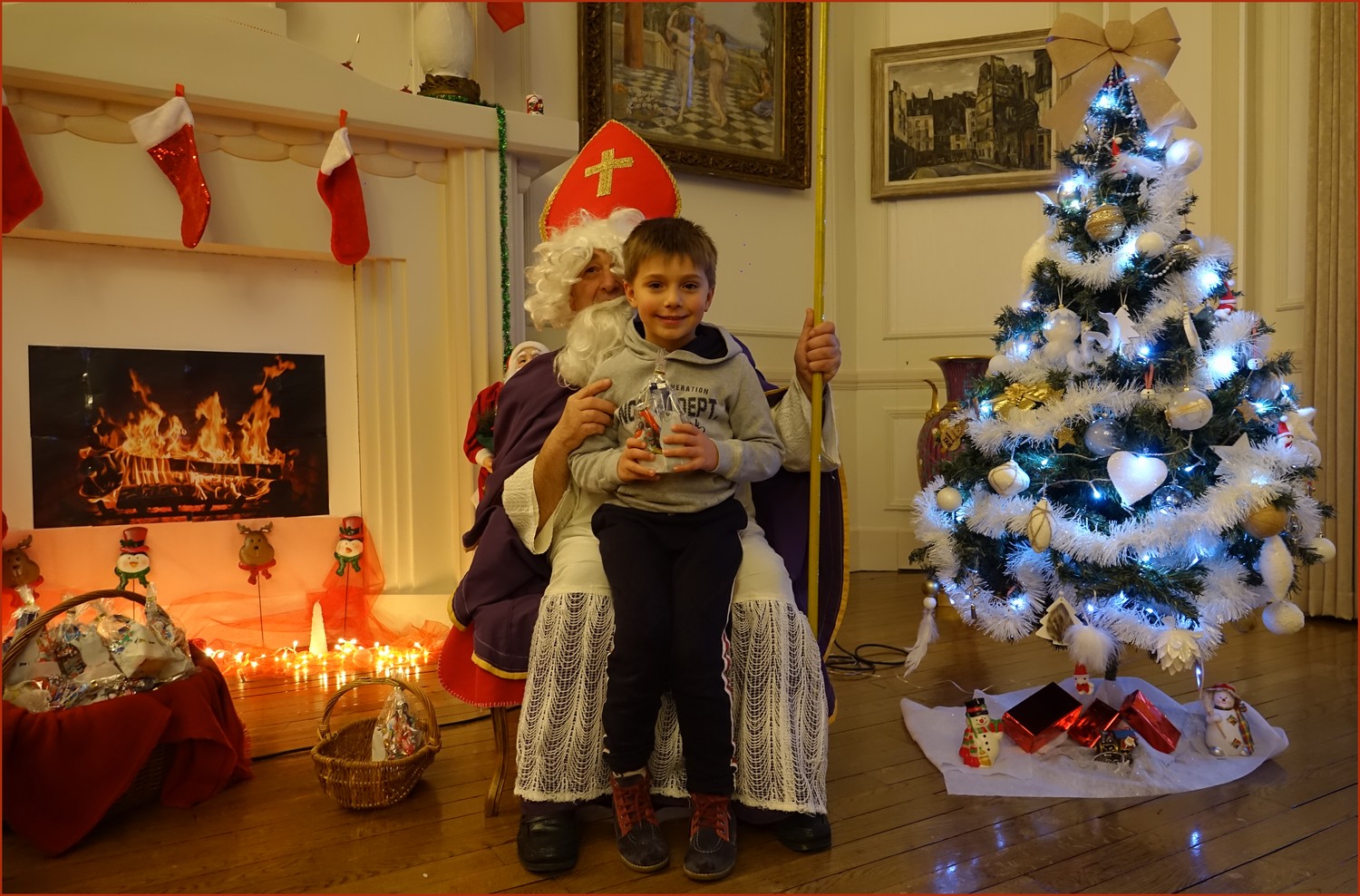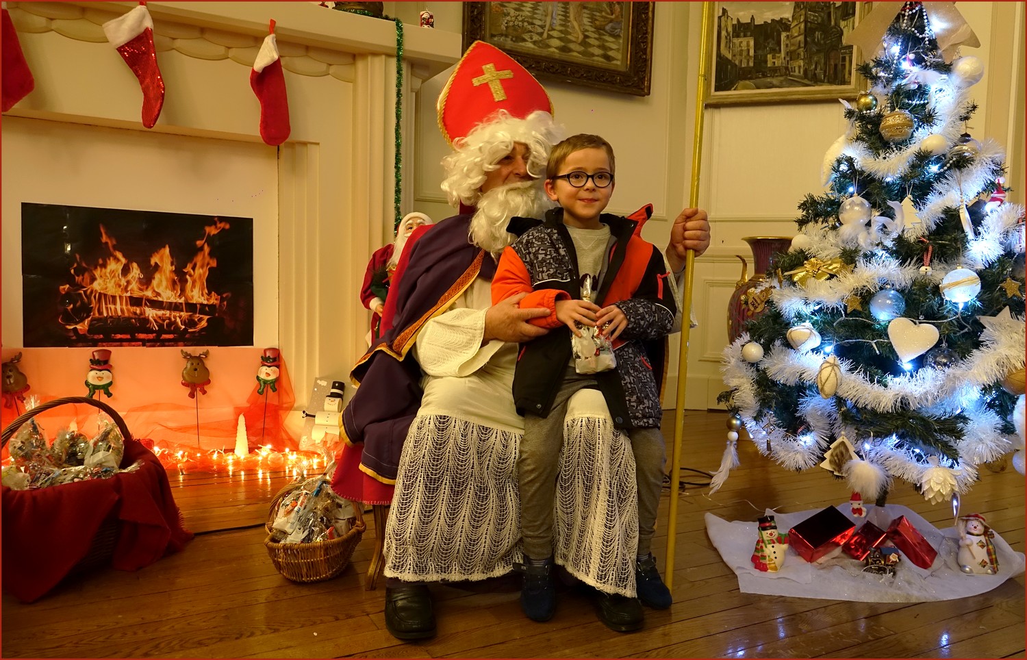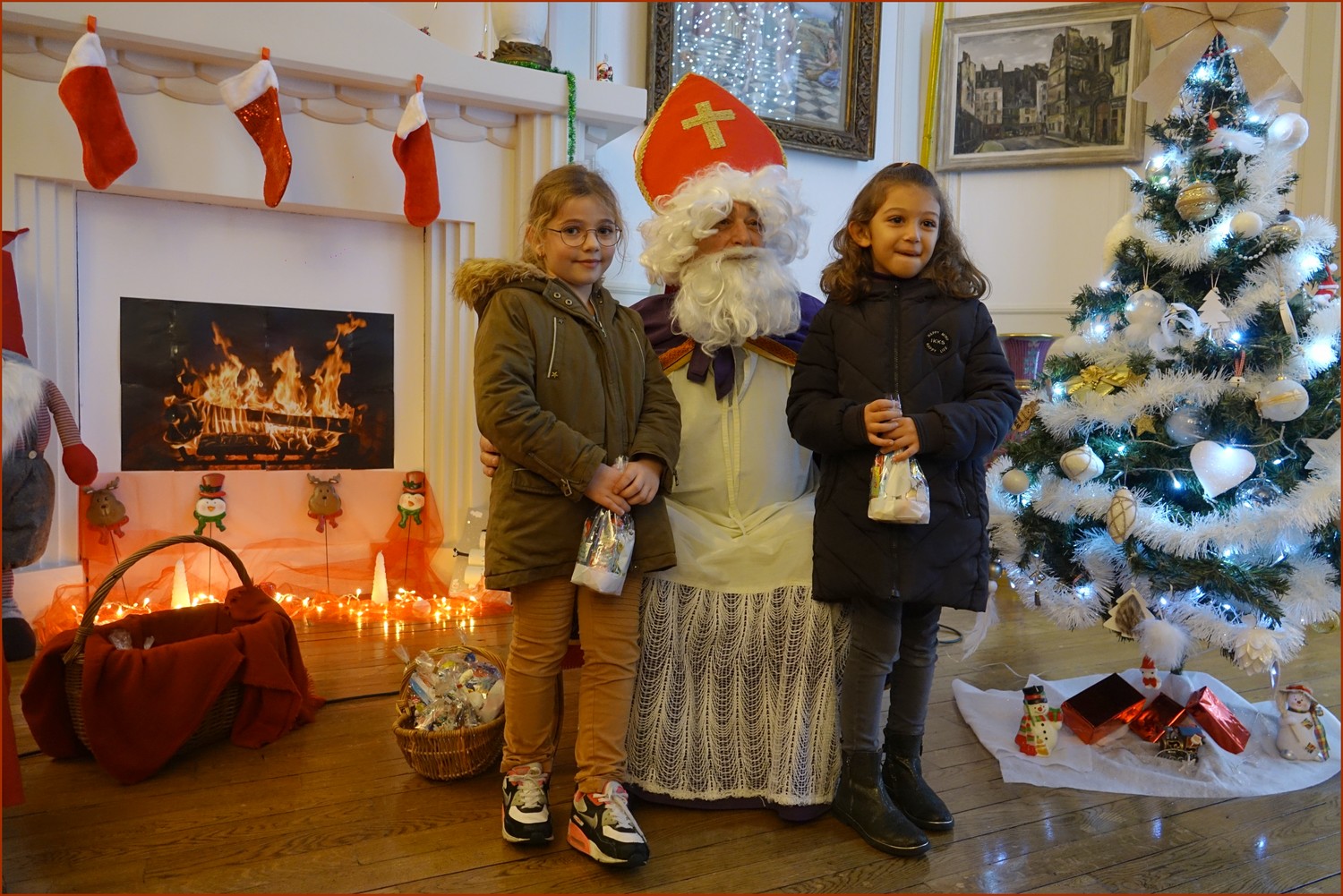 Un solide gaillard le  Saint NICOLAS, malgré son grand âge ses genoux n’ont pas fléchi à la centaine de petits  qui se sont prêtés à la traditionnelle photo, même pour ceux qui étaient beaucoup plus grands.