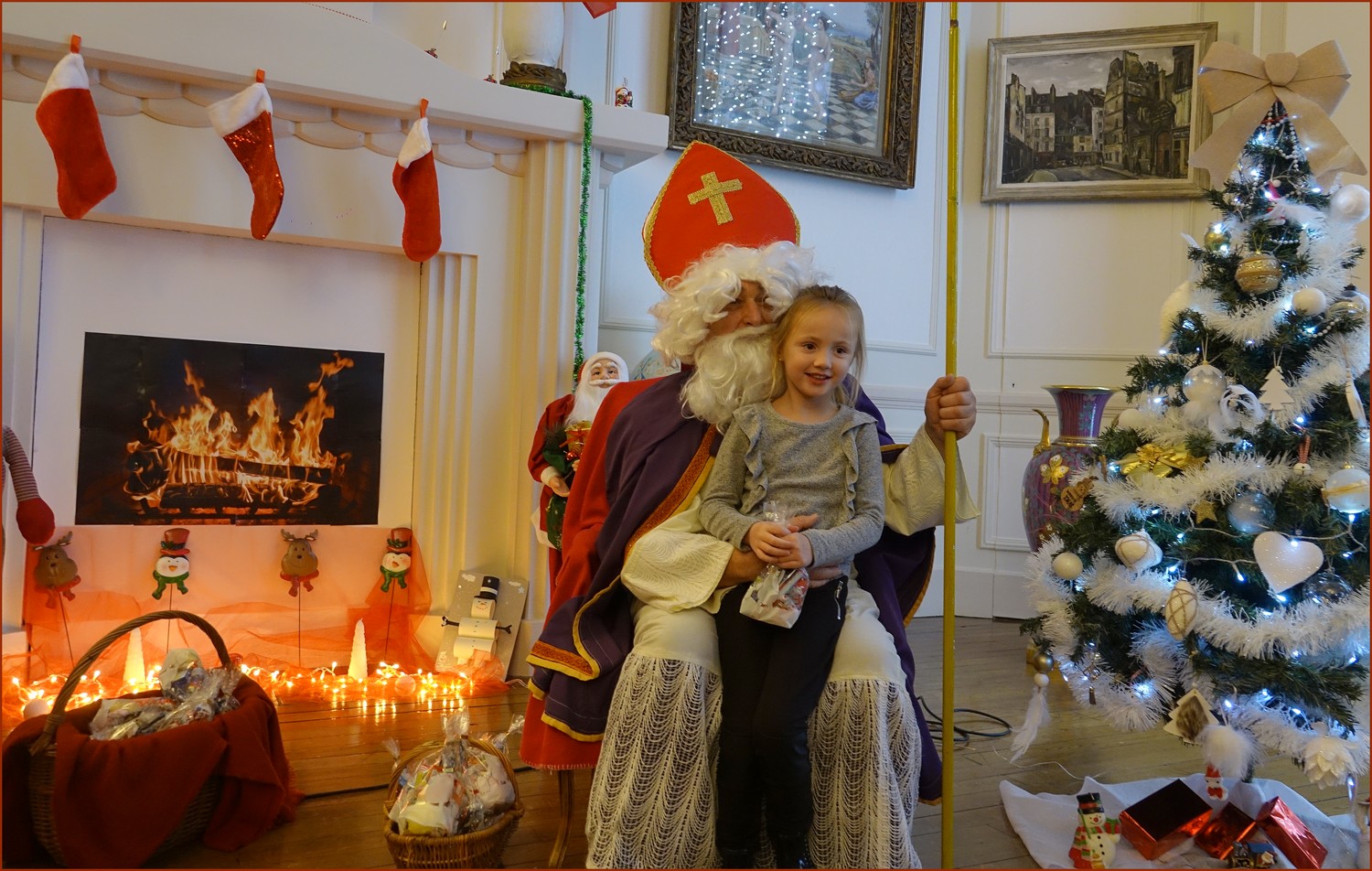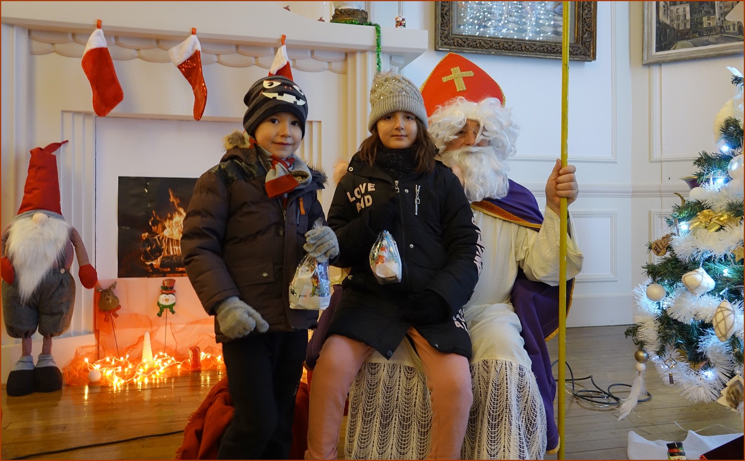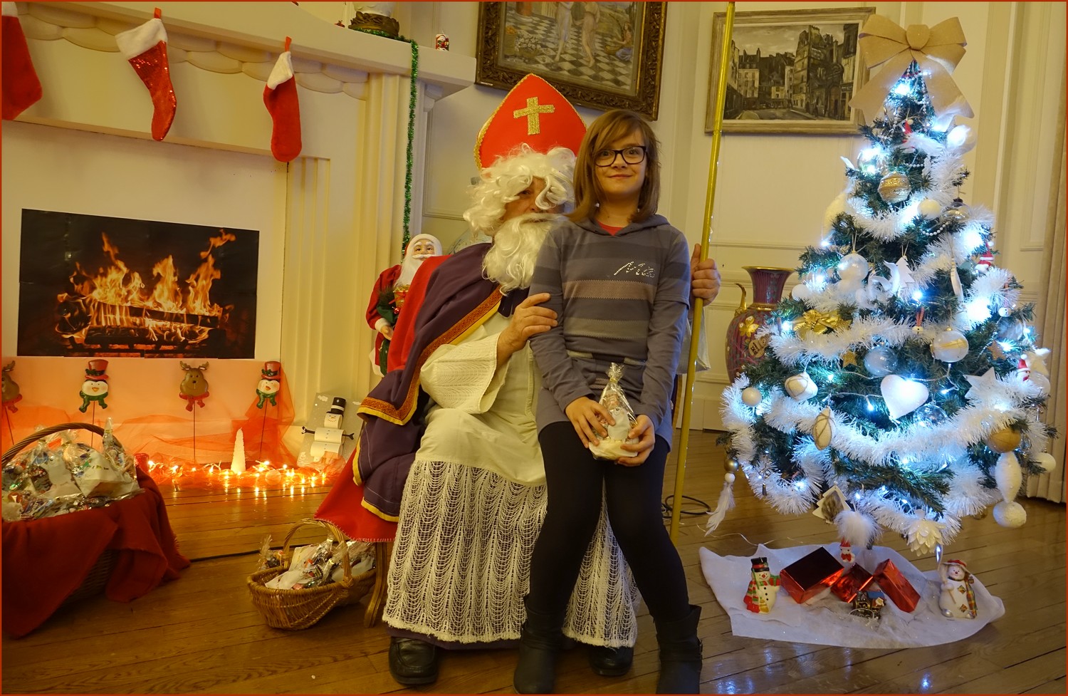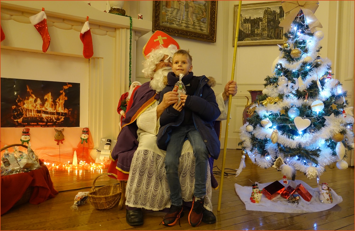 Un solide gaillard le  Saint NICOLAS, malgré son grand âge ses genoux n’ont pas fléchi à la centaine de petits  qui se sont prêtés à la traditionnelle photo, même pour ceux qui étaient beaucoup plus grands.