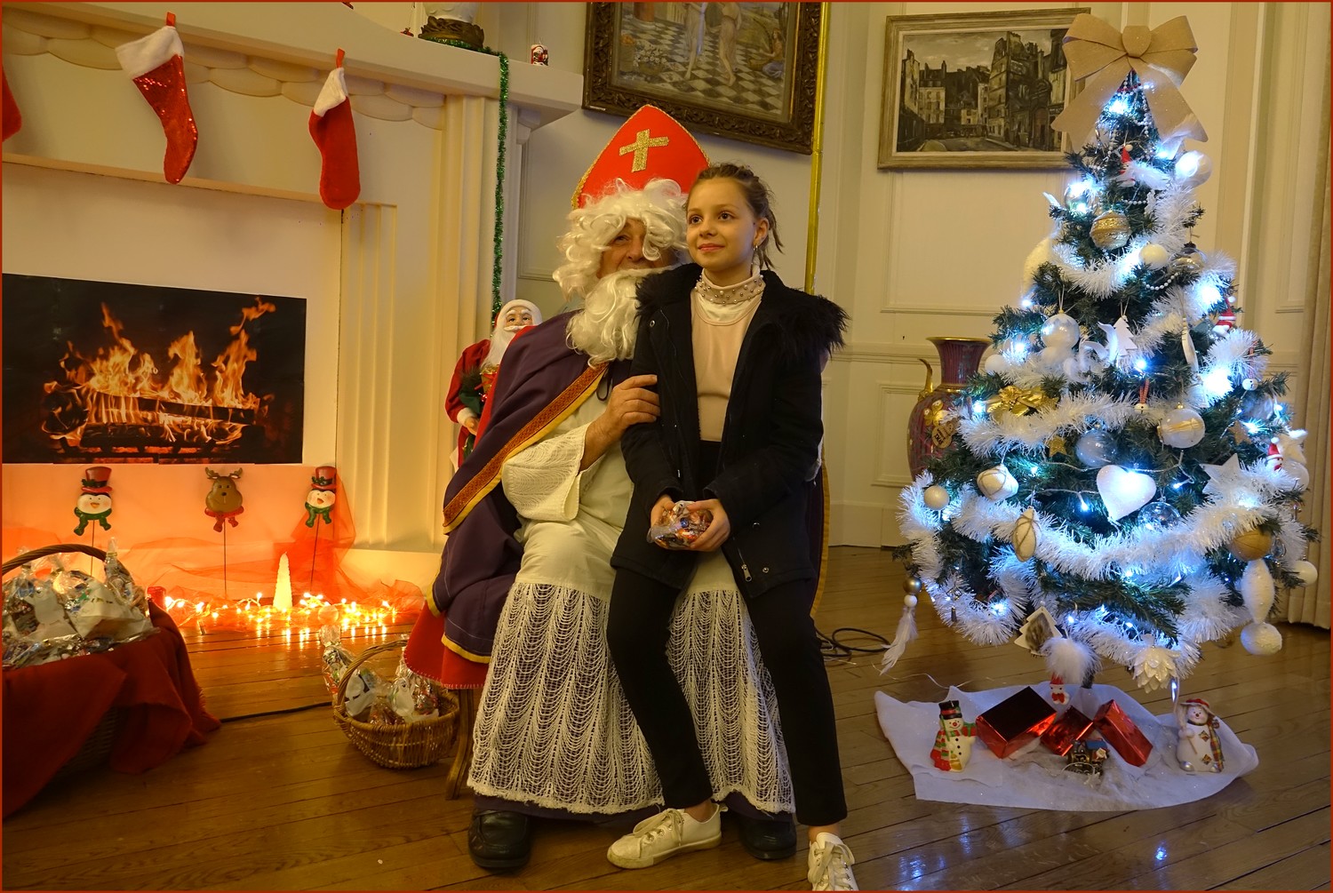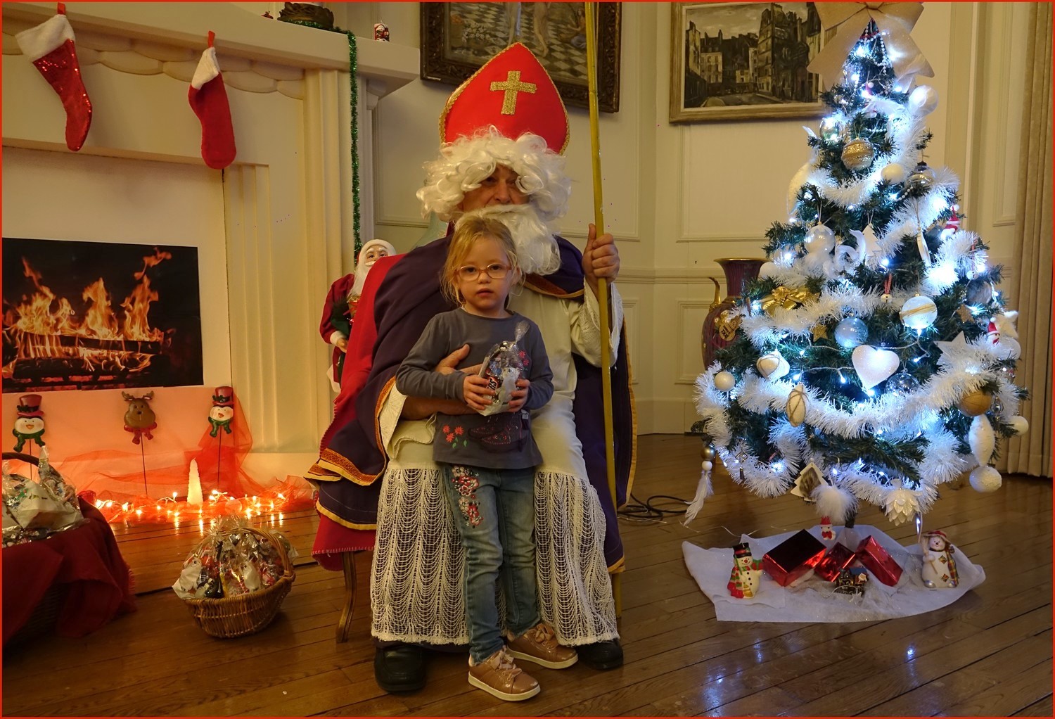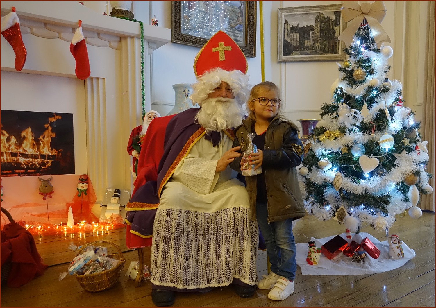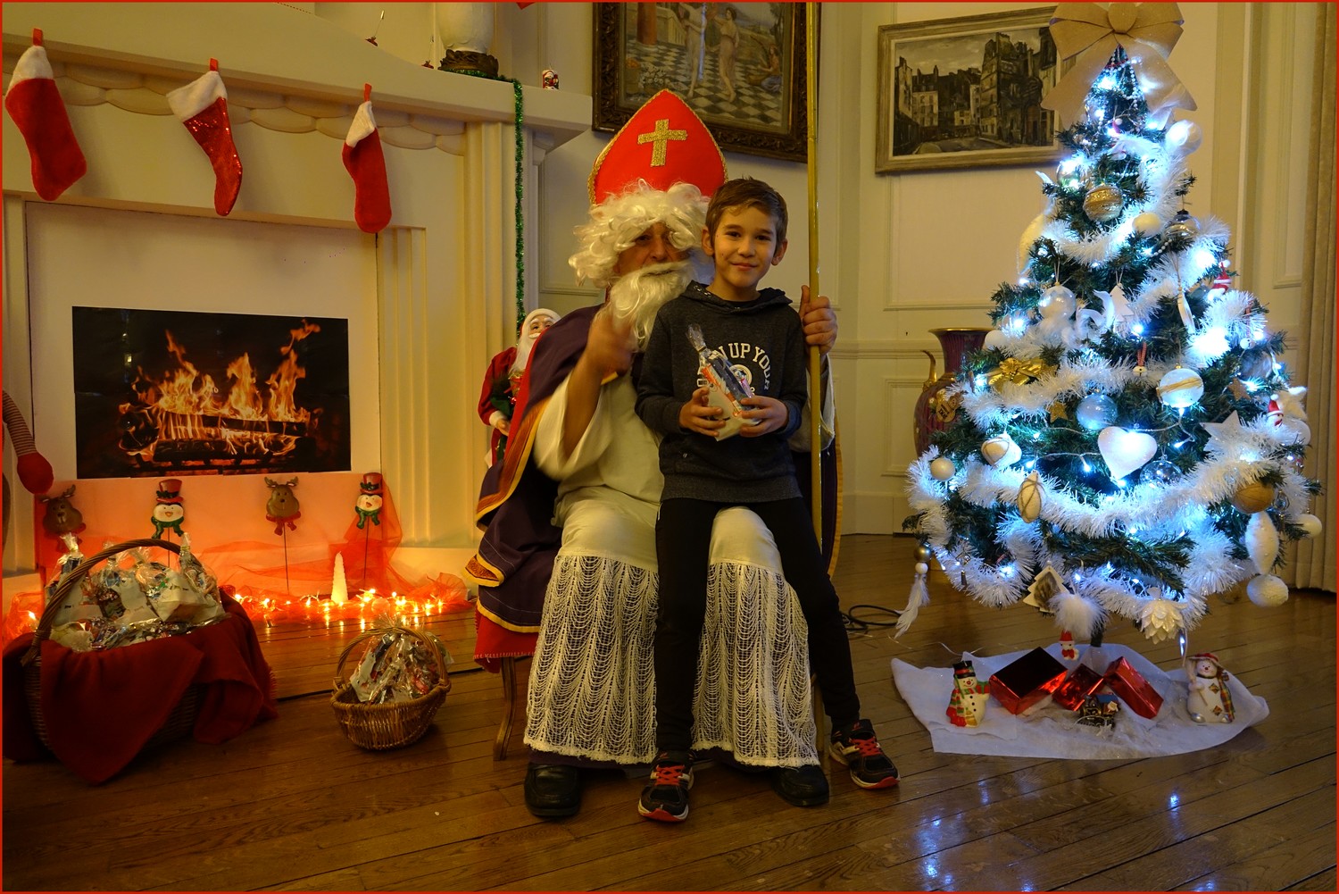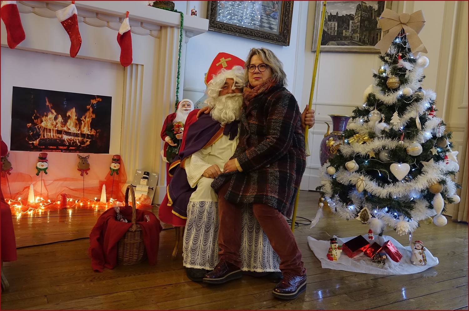 Un solide gaillard le  Saint NICOLAS, malgré son grand âge ses genoux n’ont pas fléchi à la centaine de petits  qui se sont prêtés à la traditionnelle photo, même pour ceux qui étaient beaucoup plus grands.
