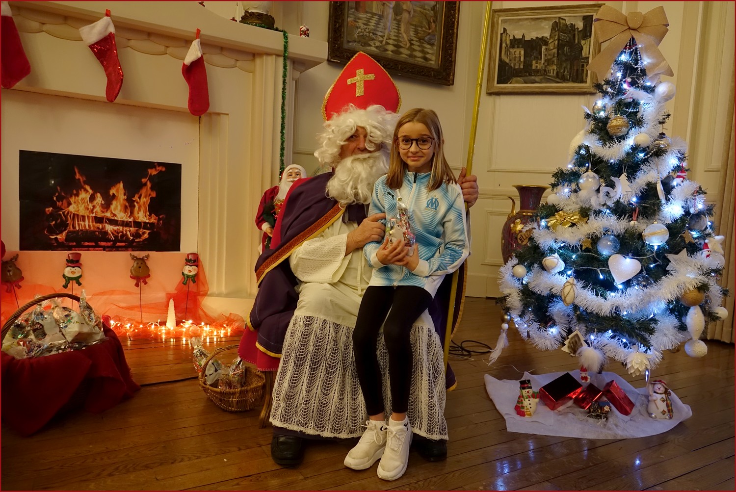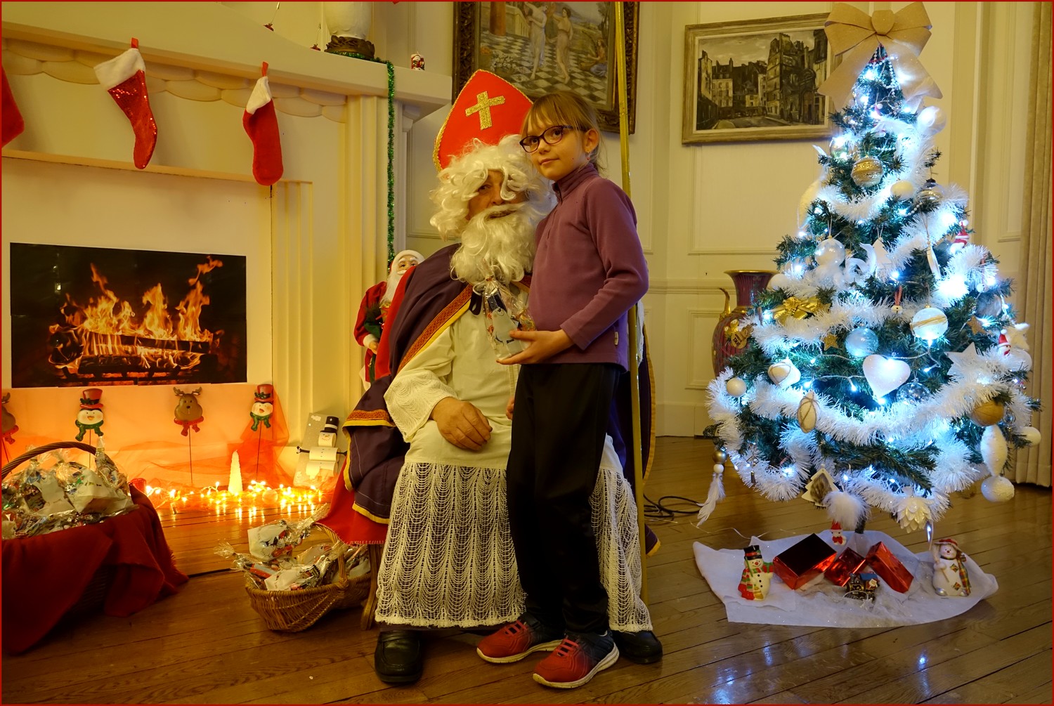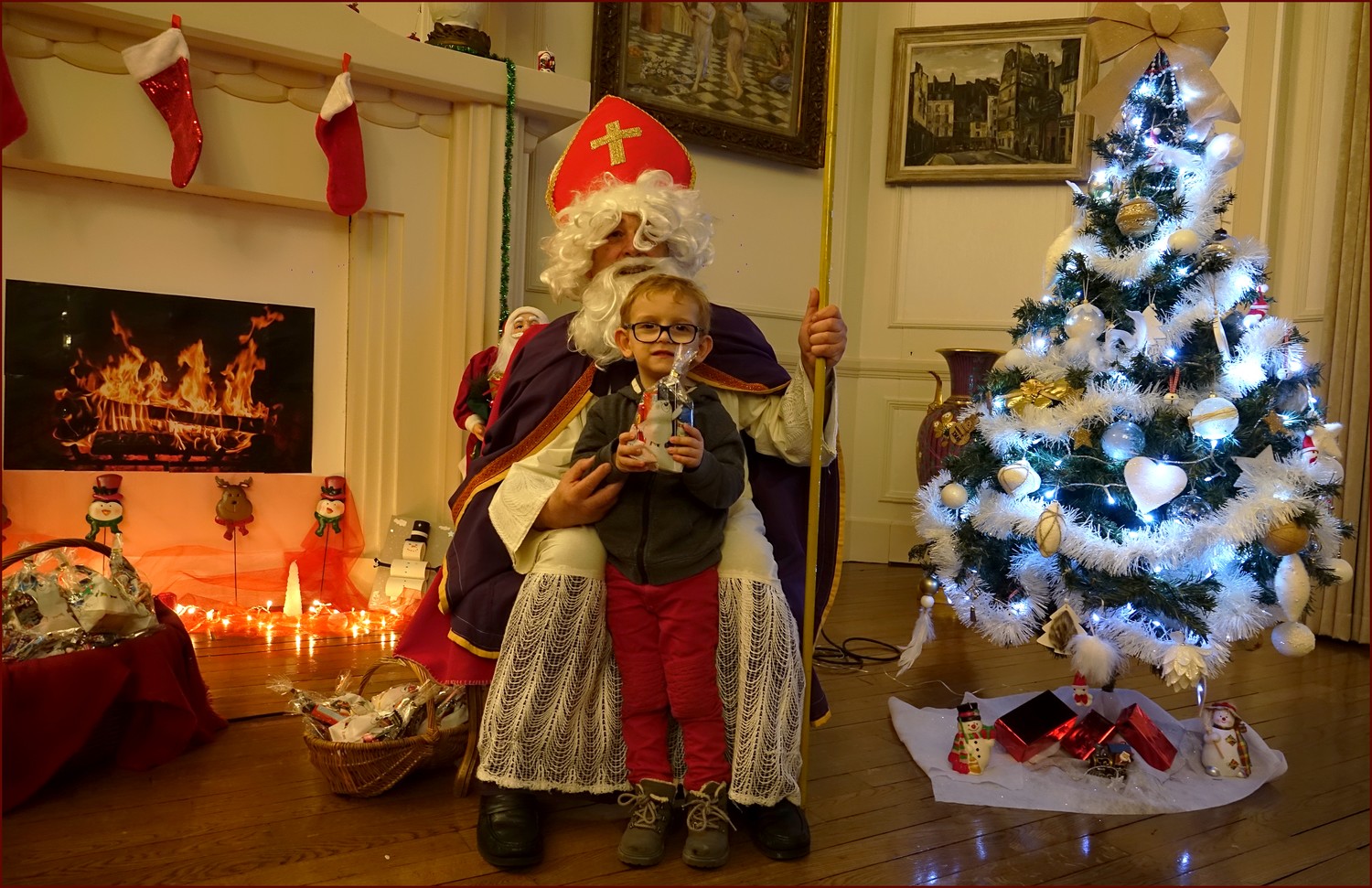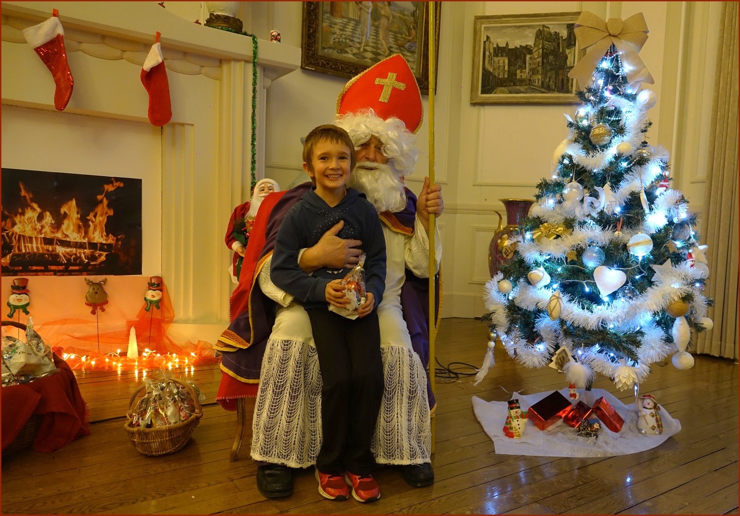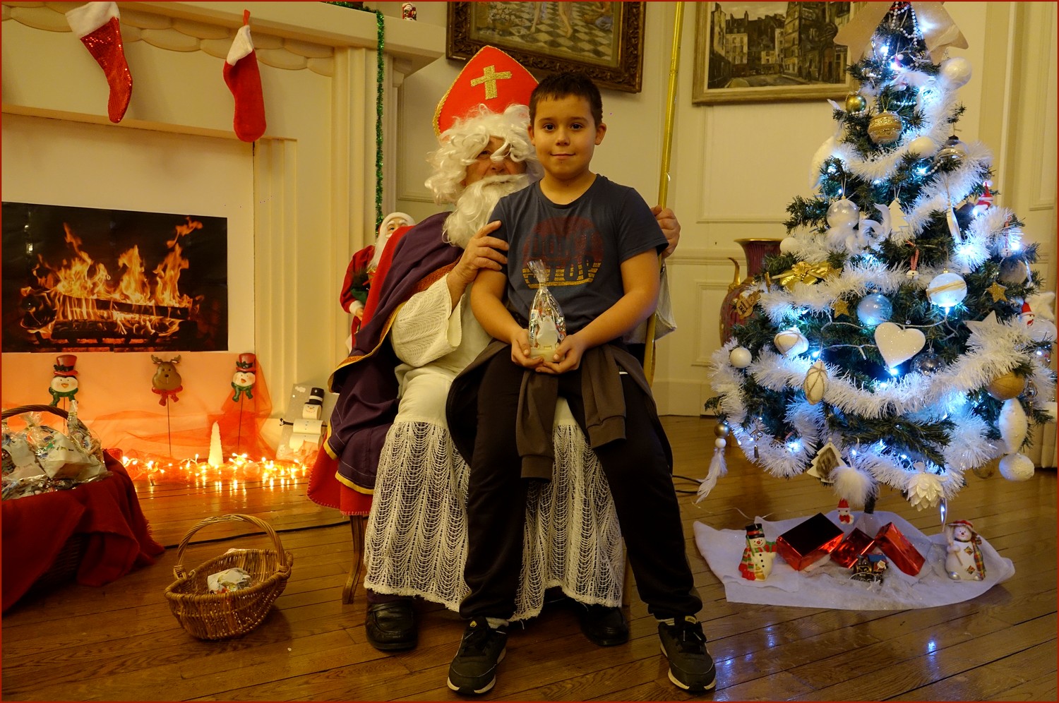 Un solide gaillard le  Saint NICOLAS, malgré son grand âge ses genoux n’ont pas fléchi à la centaine de petits  qui se sont prêtés à la traditionnelle photo, même pour ceux qui étaient beaucoup plus grands.