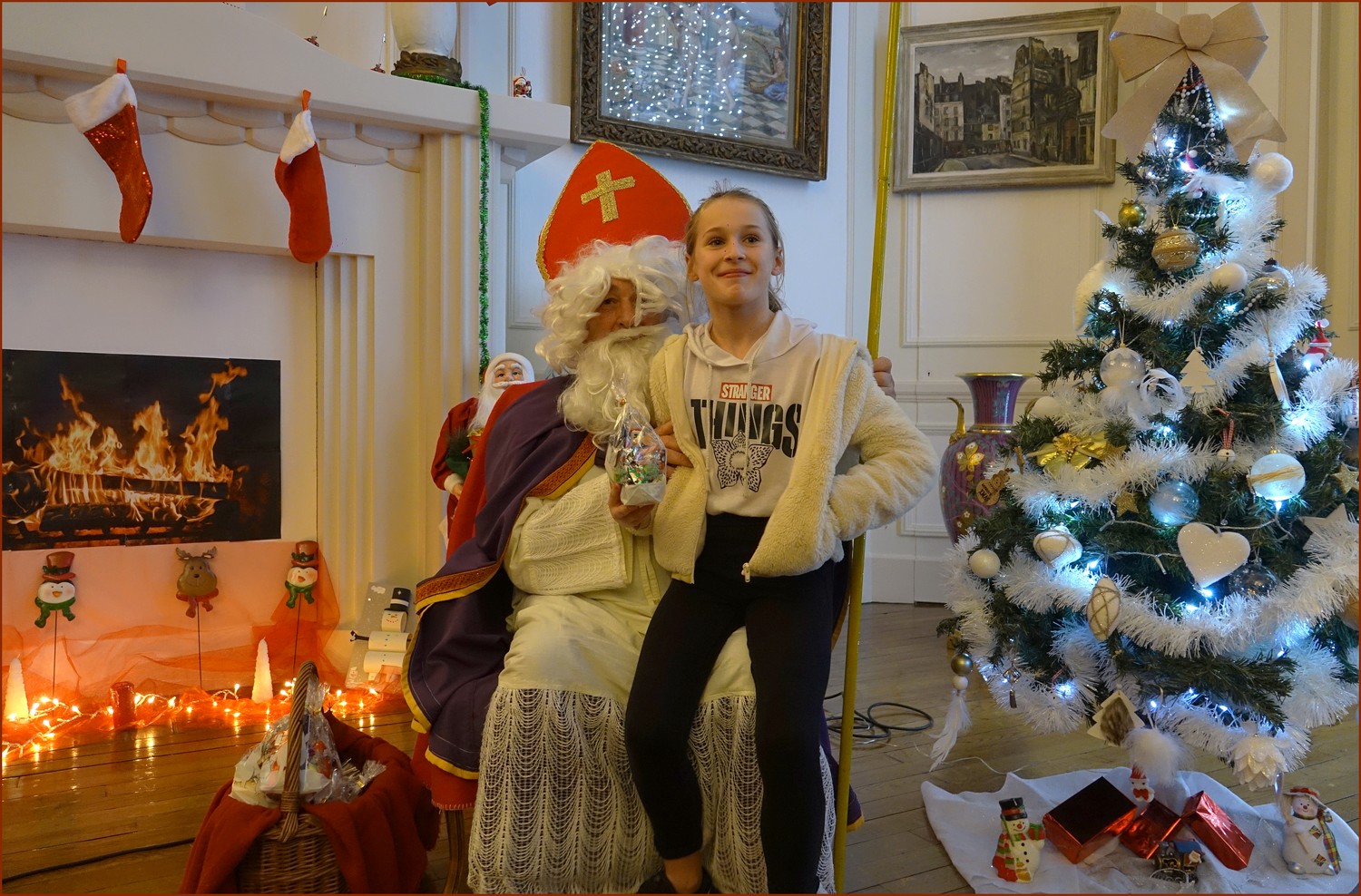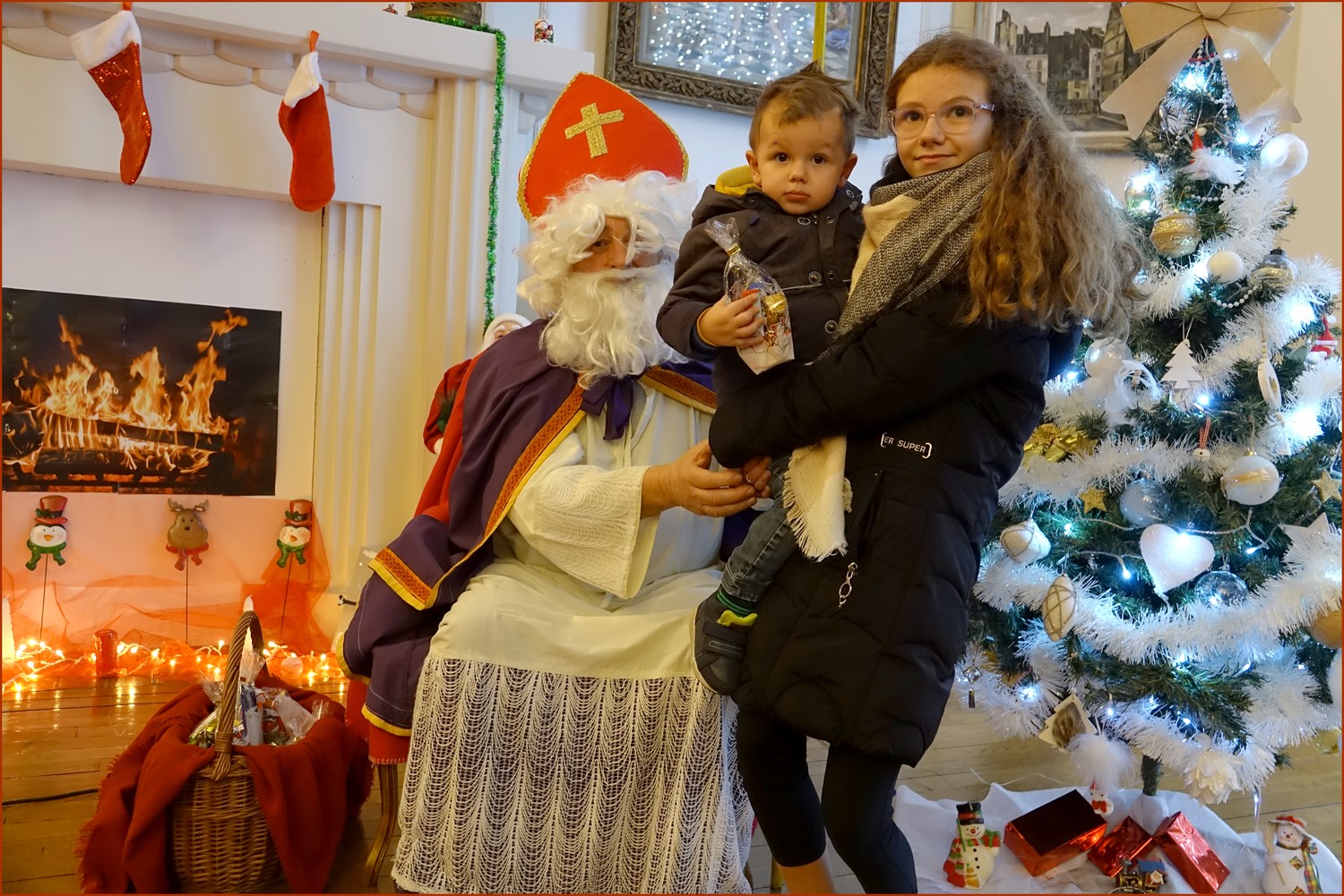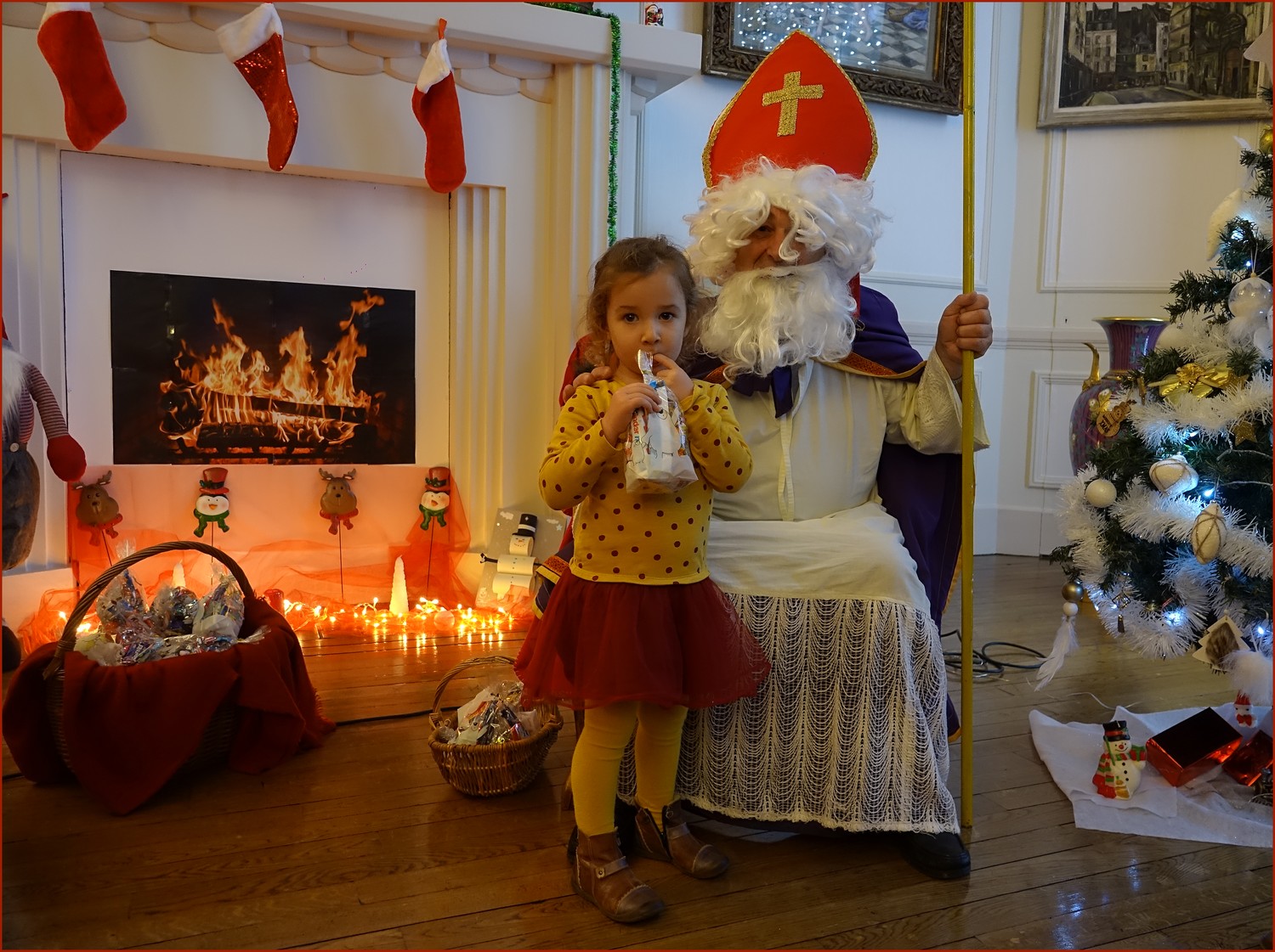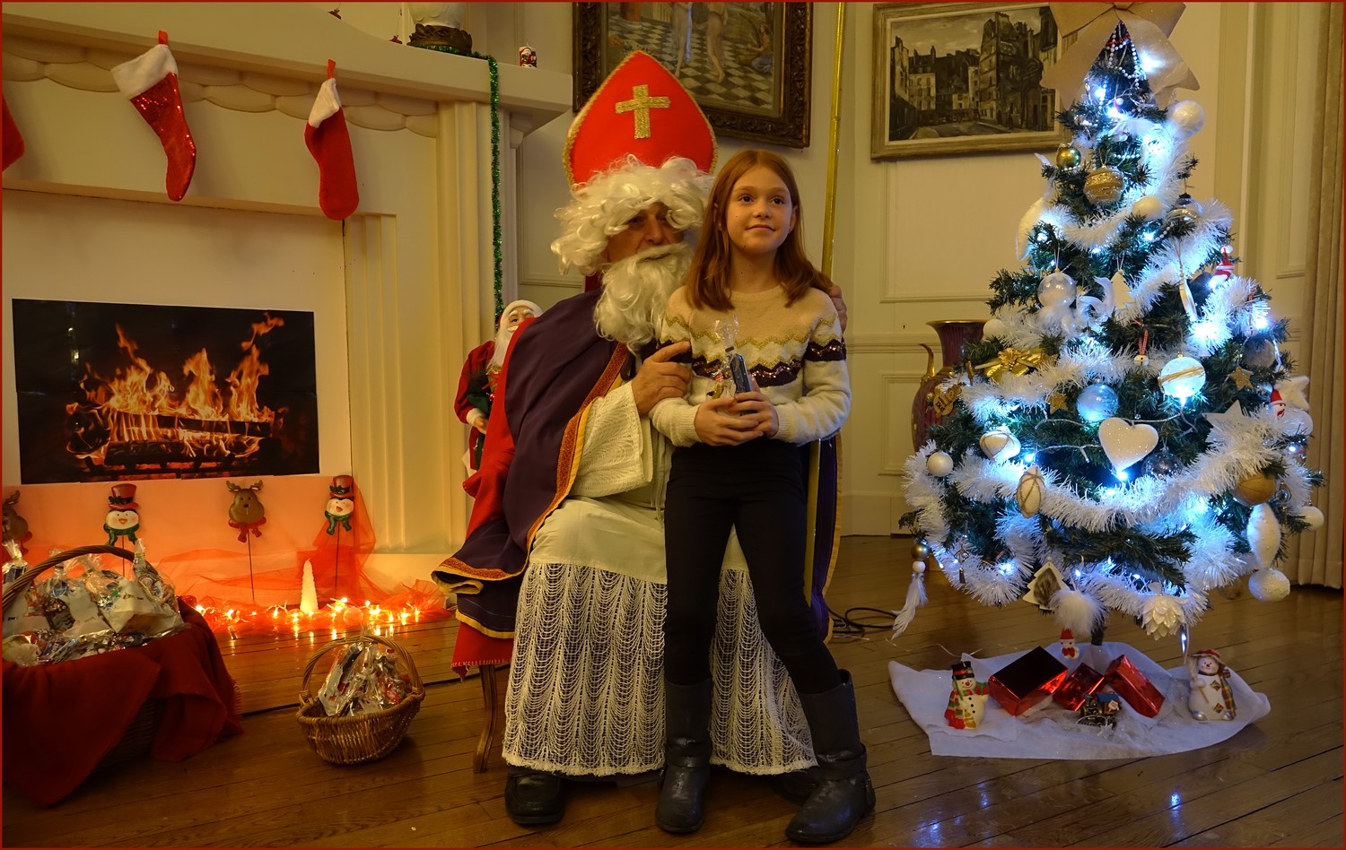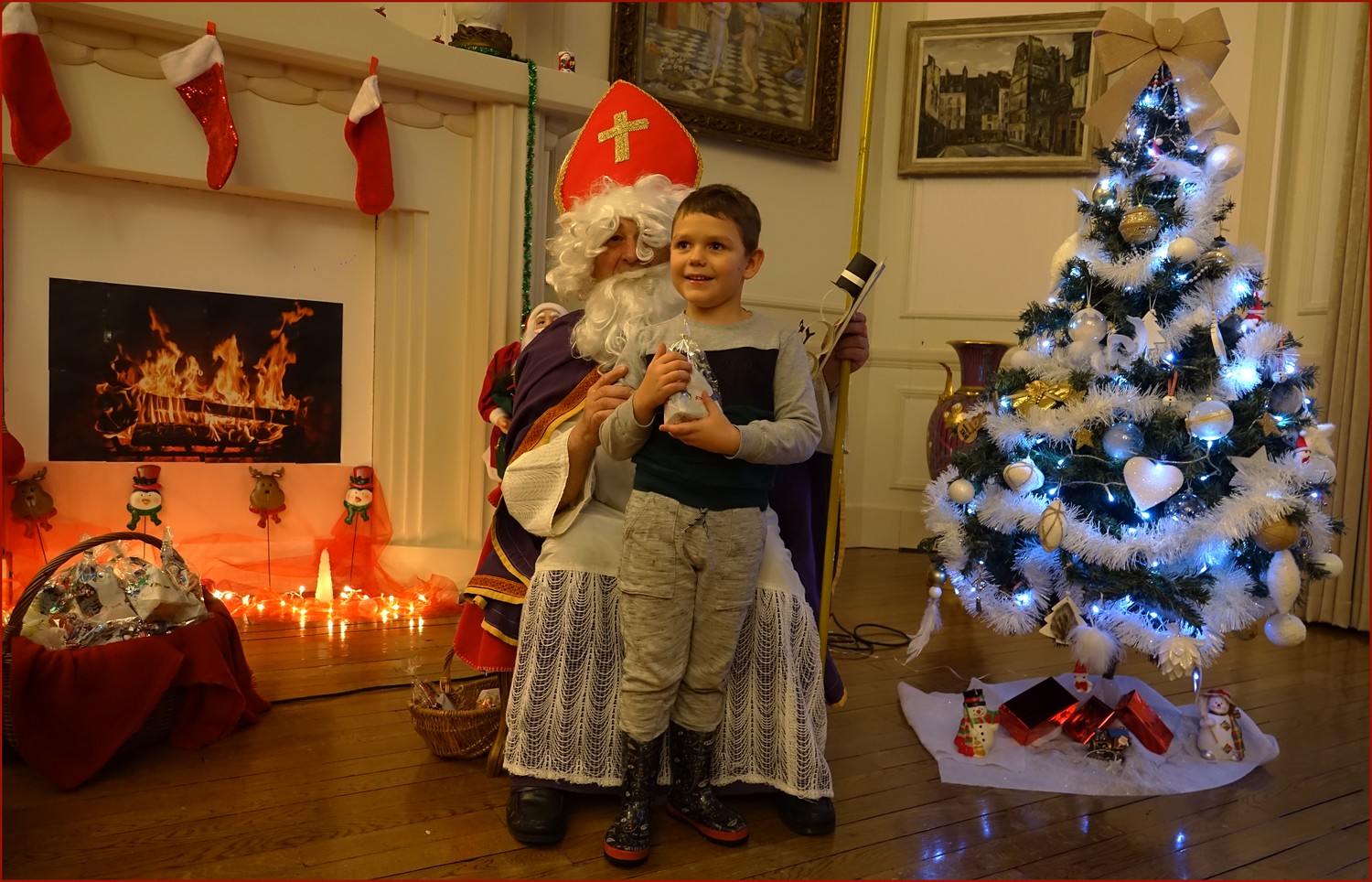 Un solide gaillard le  Saint NICOLAS, malgré son grand âge ses genoux n’ont pas fléchi à la centaine de petits  qui se sont prêtés à la traditionnelle photo, même pour ceux qui étaient beaucoup plus grands.