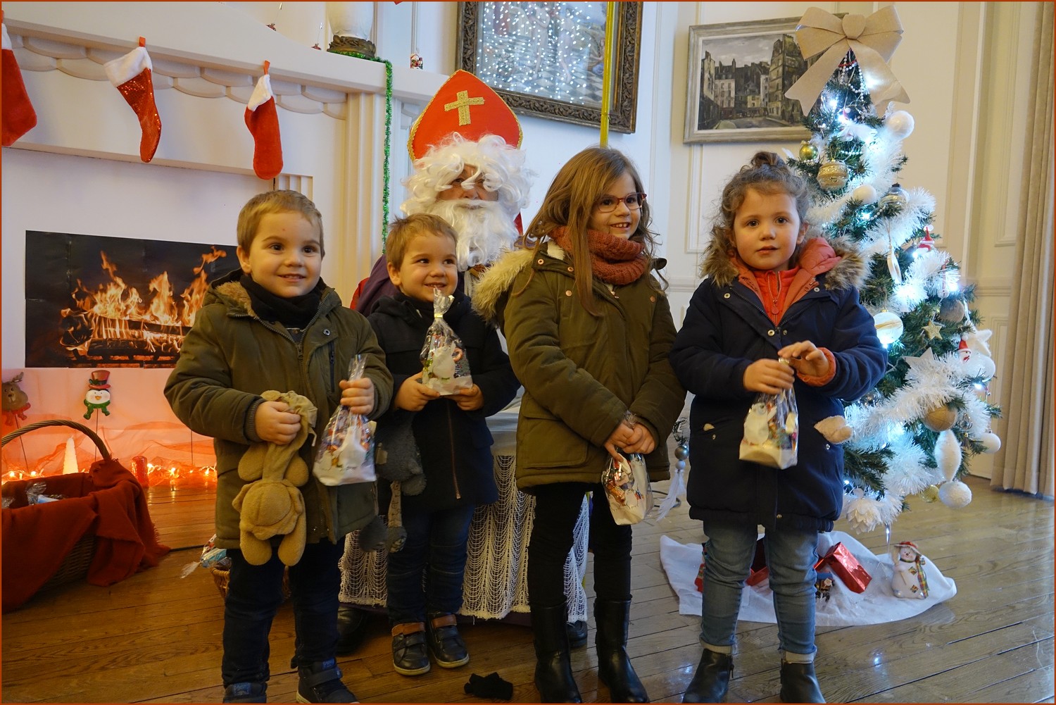 Juste après l’école, les enfants étaient en effervescence, petit à petit, accompagnés de leurs parents, ils ont gravi les marches de la mairie afin d’aller à la rencontre de Saint NICOLAS.