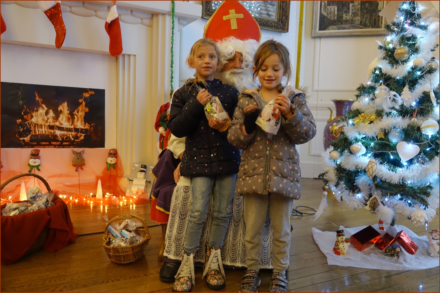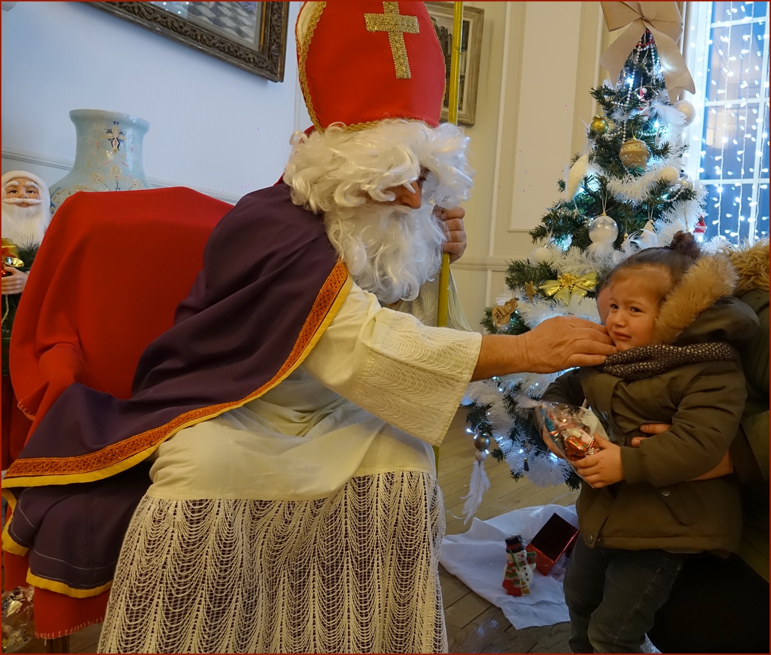 Les plus petits, intimidés, s’accrochaient à leur maman, curieux d’aller à la rencontre de ce vieux bonhomme qui chaque année réapparaît  le 6 décembre.