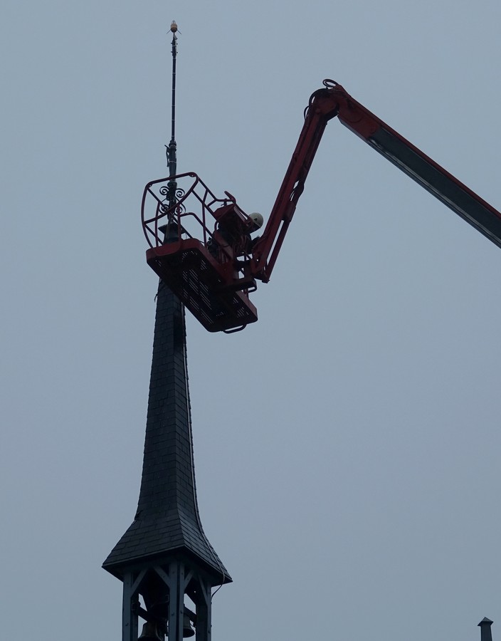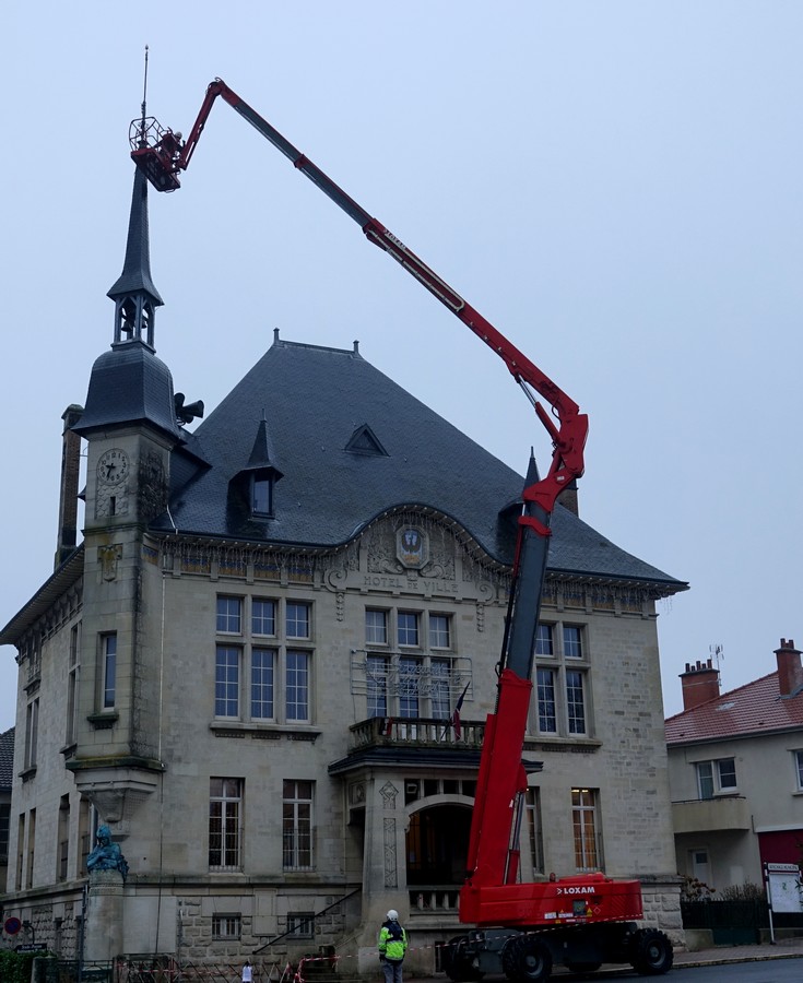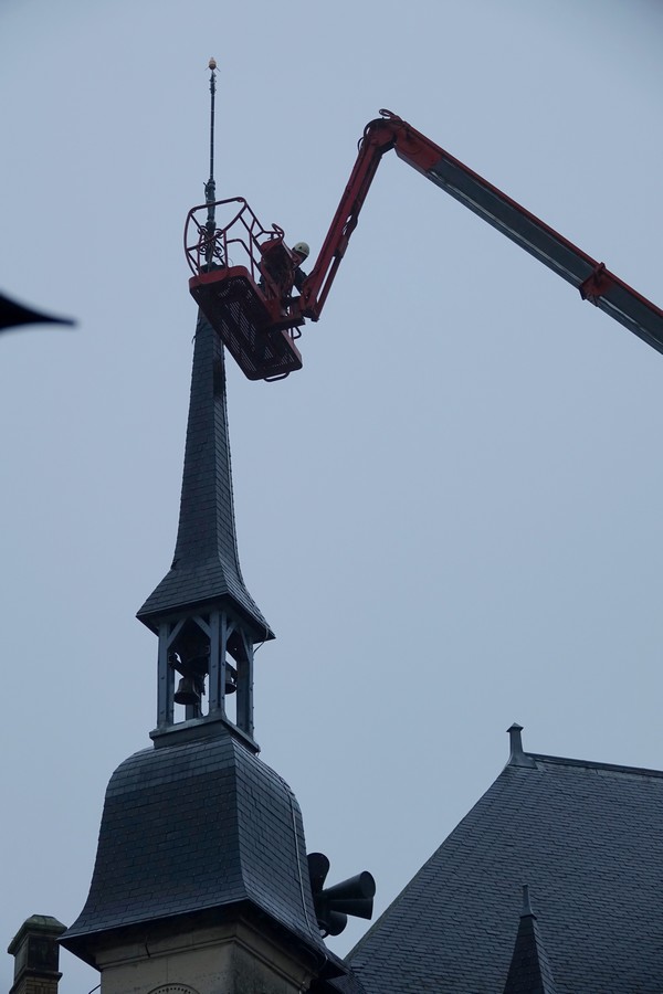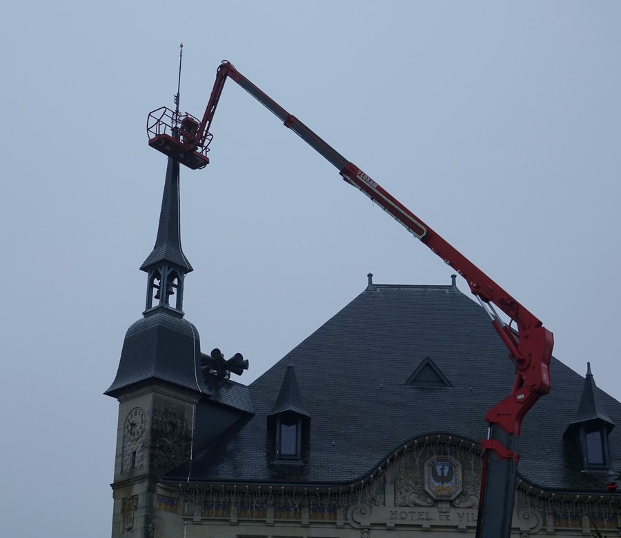 A une période de l’année où l’on s’attend plus à trouver un père Noël sur le toit, la société INDELEC vient d’installer un paratonnerre au sommet du clocheton de l’hotel de ville.