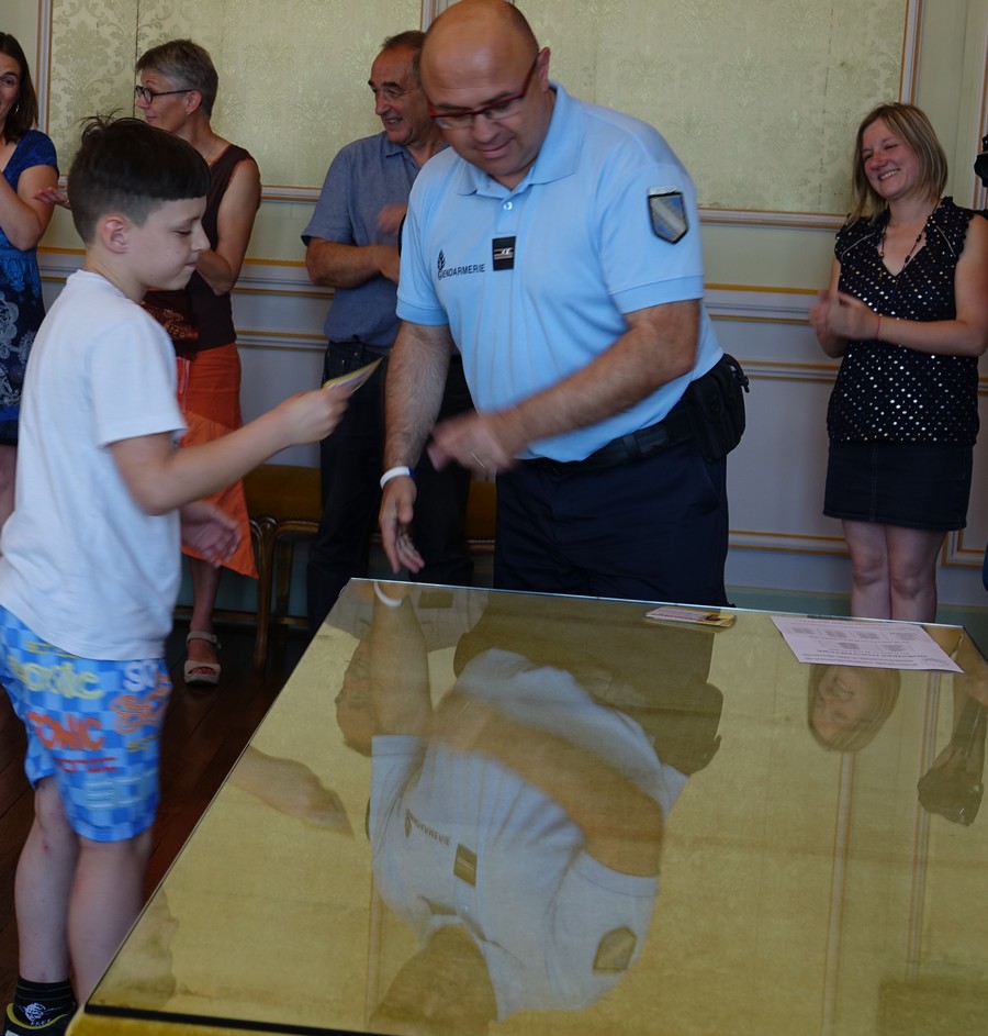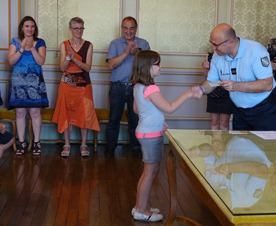 -A l’issue de ces sessions, les Permis Piétons sont remis aux enfants à l’occasion d’une cérémonie solennelle qui se tient en présence des parents, des enseignants, des gendarmes, des élus; cérémonie qui symbolise l’engagement formel de l’enfant à respecter les règles de précaution apprises.