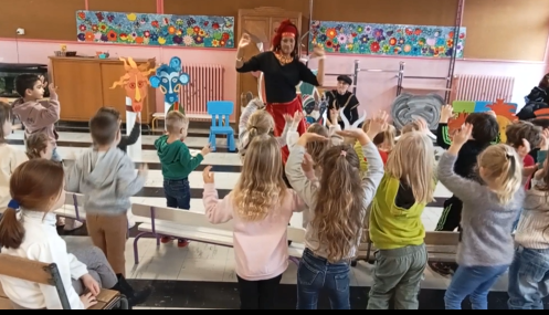 Les élèves participent en chantant et en dansant. A la fin du spectacle ils manipulent les