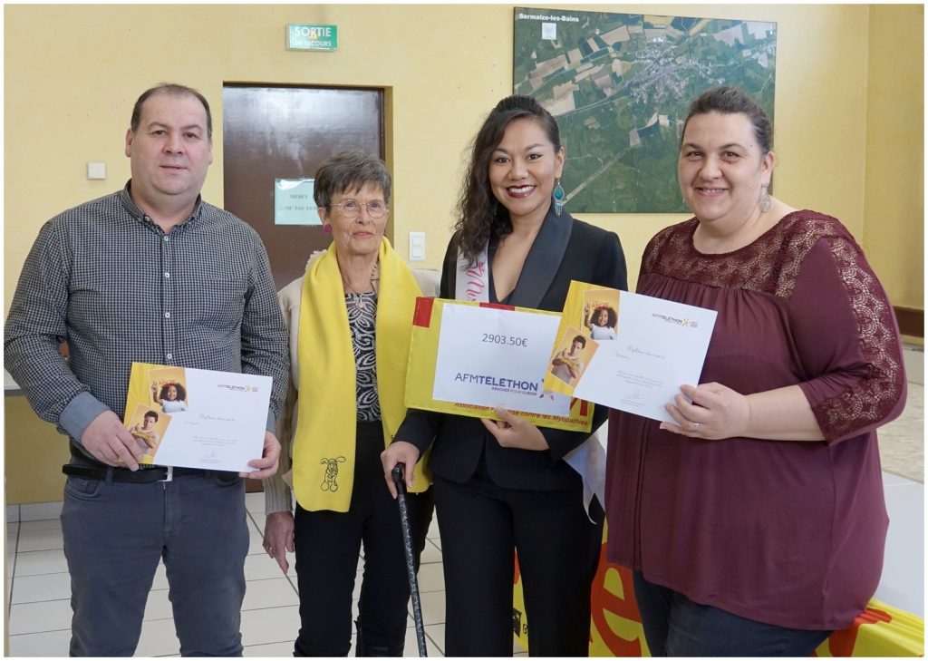 Ce samedi, le « Groupe TELETHON Sermaize » organisait, en présence de Germaine MORIZET de la coordination MARNE et Monique CUGNOT, Miss Handi France 2019 marraine de l’AFM Téléthon MARNE EST, une remise officielle de diplômes afin de remercier tous les acteurs des diverses manifestations pour le téléthon 2019.