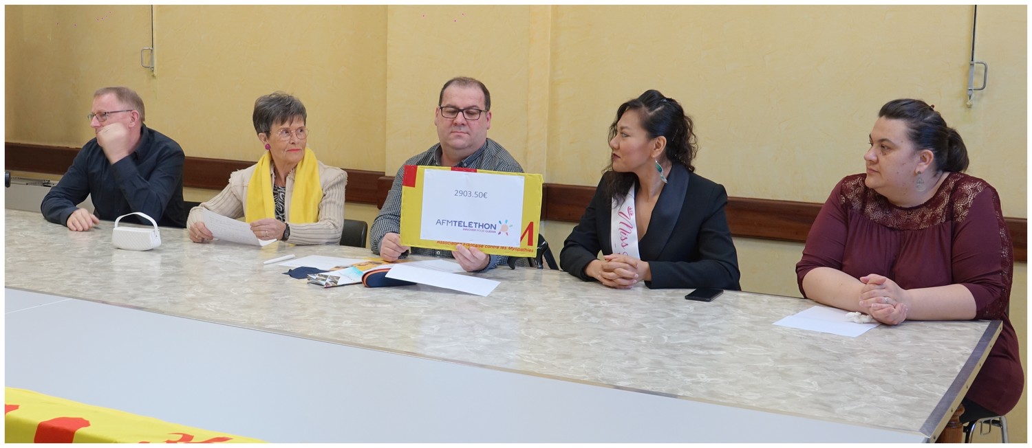 C’est donc un chèque de 2903,50 euros, bilan des ces actions, qui a été remis à l’AFM Téléthon. Germaine MORIZET a remercié l’ensemble des bénévoles en rappelant l’importance de ces actions dont les bénéfices contribuent à la recherche contre la maladie et permettent d’entrevoir de nouvelles pistes thérapeutiques.