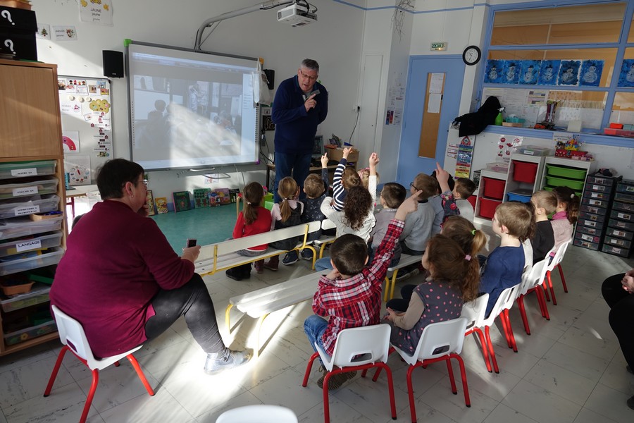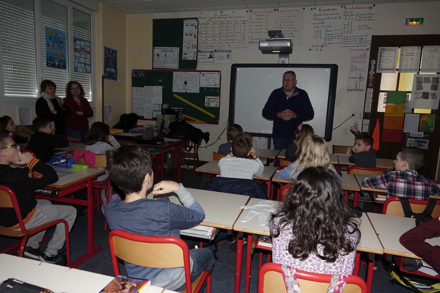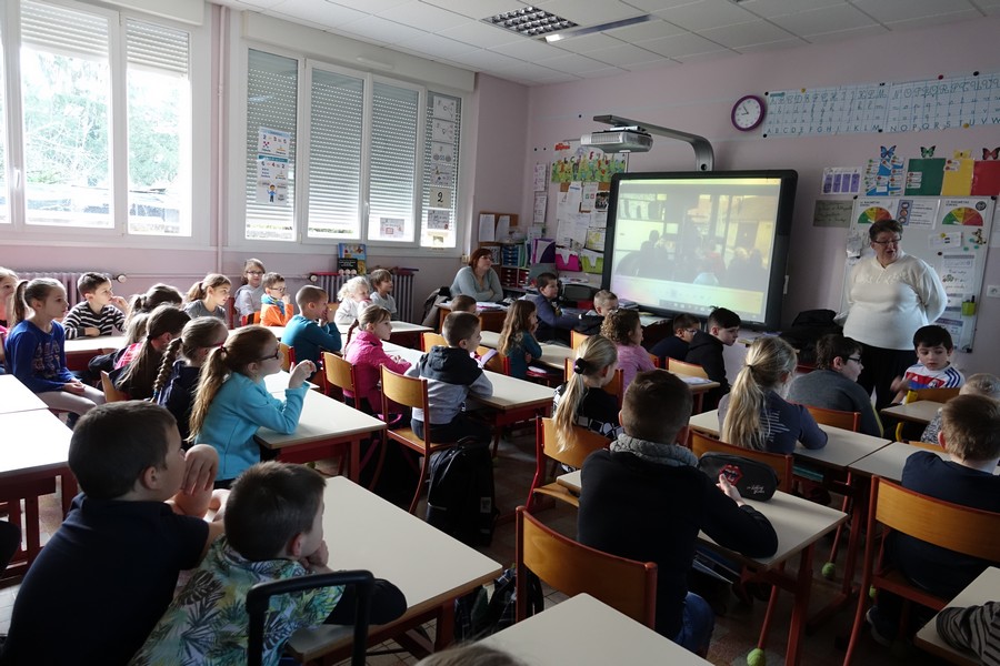 M. et Mme PINTAT animateurs de l’ADETEEP (L’association départementale pour les transports éducatifs de l’enseignement public) ont présenté une séquence vidéo mettant en scène le déplacement quotidien d’élèves se rendant à leurs écoles, ils ont rappelé aux enfants que le RESPECT favorise un transport scolaire serein: Respect du car, du personnel, des camarades et également le respect des règles de sécurité: