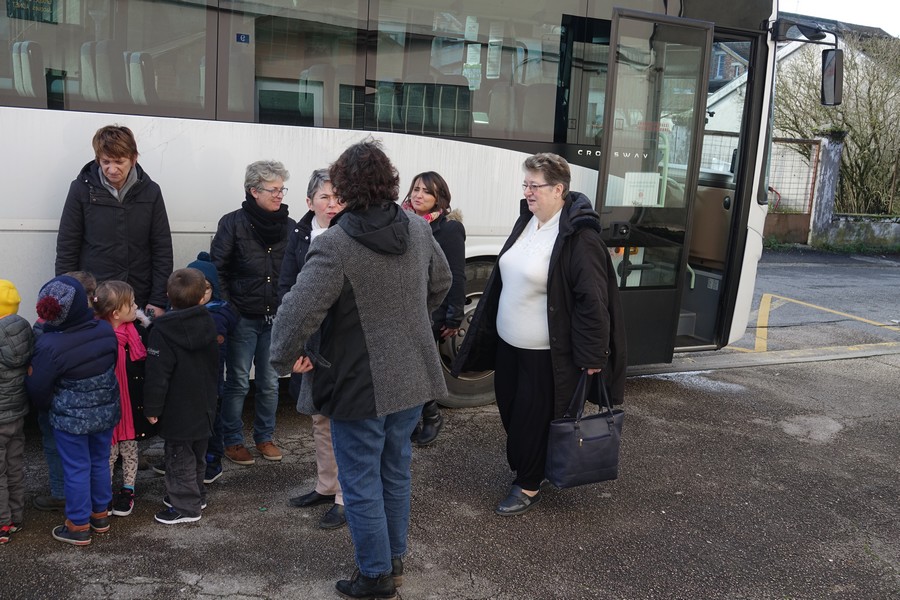 Les animateurs ont rappelé aux accompagnateurs où ils doivent être assis lors des déplacements. Les enfants assis près de l’allée centrale doivent descendre en premier, l’adulte placé au fond du car doit remonter l’allée centrale.