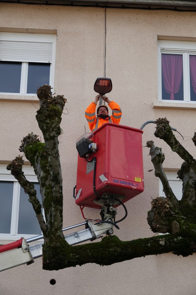 Dans son programme de rénovation de l’éclairage public, la commune de Sermaize a fait remplacer dans plusieurs rues les ampoules énergivores par un éclairage à Led permettant de moduler celui-ci en fonction des besoins. Après la rue FRITSCH l’an passé et pour une cohérence de quartier, ce sont 43 points qui viennent de passer à la Led: après démontage des anciennes crosses, la société VIGILEC a installé de nouvelles potences rue BENARD, place Léon BOURGEOIS, rue D’ANDERNAY, rue Jean MACE, près de l’église vers la rue du PORT. Un avantage prépondérant des « Led » est de pouvoir diminuer leur puissance, celle-ci est donc abaissée de 23h à 5h du matin tout en assurant un confort mais en réalisant une économie d’électricité. Le coût de cet investissement étant de près de 30 000 euros.