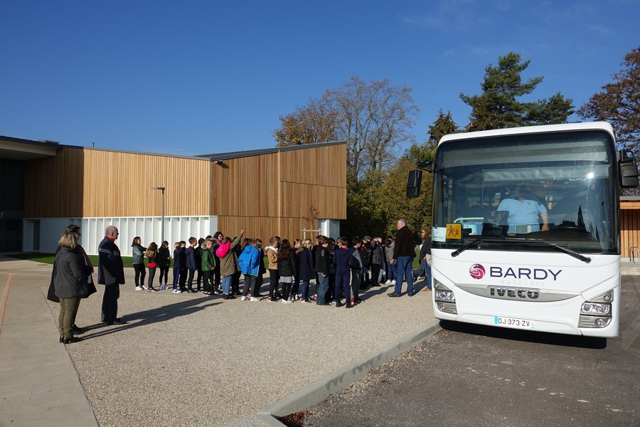Les actions de sensibilisation à la sécurité routière se sont poursuivies par les interventions du Major Thierry LAURENT accompagné du gendarme Mathilde RICHET: attendre le départ du car pour traverser la chaussée, attacher sa ceinture de sécurité, respect du chauffeur …