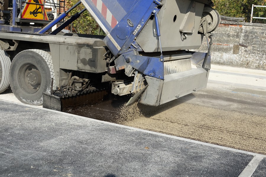 Après la pose de la GNT des essais de compactage avec la « dynaplaque » ont été réalisés: principe qui consiste à reproduire la sollicitation du sol par le passage d’un véhicule lourd afin de s’assurer que la classe de résistance est conforme à celle prévue au CCTP ( Cahier des Clauses Techniques Particulières) précise Francis HOUZELOT chef de chantier. Le planning est respecté, les enrobés seront réalisés à partir de mardi prochain.
